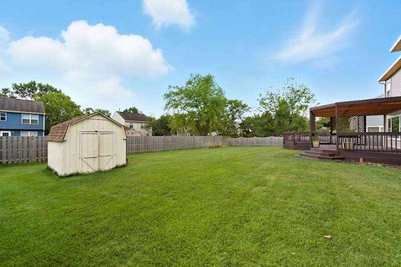 Welcome home to this spacious 4-bedroom beauty! The main floor offers a layout ideal for both entertaining and everyday living, featuring a kitchen that flows seamlessly into the cozy family room with a gas fireplace, plus formal living and dining spaces-perfect for hosting gatherings and creating holiday memories. Upstairs, the immense primary suite boasts vaulted ceilings, abundant closet space, and a private ensuite bath featuring dual sinks, separate tub and shower, vaulted ceilings and skylight. Three additional generously sized bedrooms share a full bath, providing plenty of room for everyone. Step outside and enjoy a fenced yard, a handy storage shed, and a two-tier deck-great for relaxing or entertaining. The unfinished basement offers excellent storage and potential for future expansion. Conveniently located just minutes from shopping, dining, and entertainment, and within walking distance to Barbara Key Park. You deserve this!
