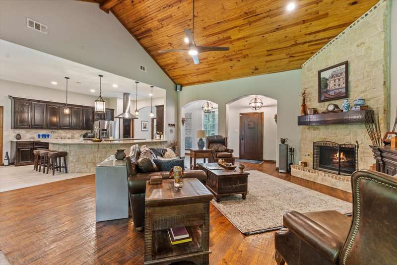$26K PRICE REDUCTION HIDDEN GEM! Experience the tranquility in this beautiful stone-and-brick CUSTOM BUILT home with premium upgrades throughout! Nestled on 2.5 secluded & wooded acreage surrounded by other nice homes on acreage. Enjoy a low tax rate and a convenient location just minutes from Rockwall with easy access to I-30 and Hwy 276. ADJACENT 1 ACRE WOODED LOT ALSO FOR SALE. Relax on the welcoming front porch with morning coffee and the soothing sounds of nature all around. As you enter the front door, you notice the spacious open living area with soaring ceilings and natural wood beam, hand-scraped hardwood floors, and a wall of windows showcasing the park-like backyard. Perfect for entertaining or relaxing. The gourmet kitchen is enhanced with newer Taj Mahal quartzite countertops, KitchenAid stainless appliances & Bosch induction cooktop. The primary suite is a peaceful retreat with a spa-like setting, huge primary bath with frameless shower, and dual vanities. Additional highlights include a dedicated office with wood floors, ample storage, and a large media room with projector for family movie nights. Upgrades continue with a hail-resistant roof, large workshop with overhead doors, commercial-grade epoxy garage flooring, new hot water heater, and plenty of parking for a boat or RV. Adjacent 1-acre lot (MLS #20970343) also available. Multi-generational living is possible with the smaller home next door (MLS #20969865). Just a short drive into Rockwall or L3 in Greenville. This amazing property offers a lot of privacy, comfort, and versatility in a truly serene settingcome see it for yourself!
