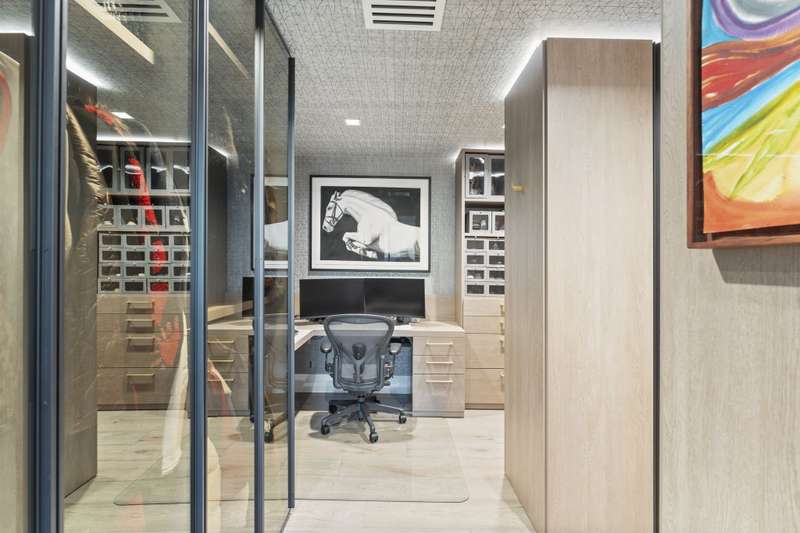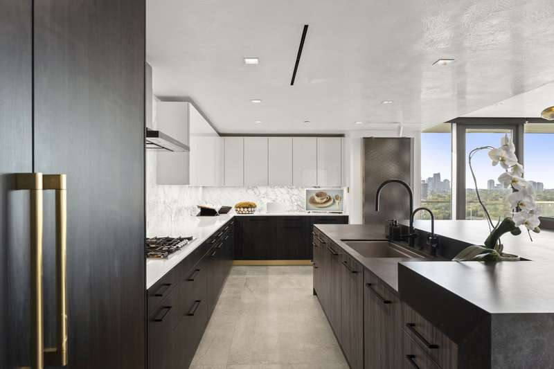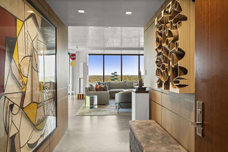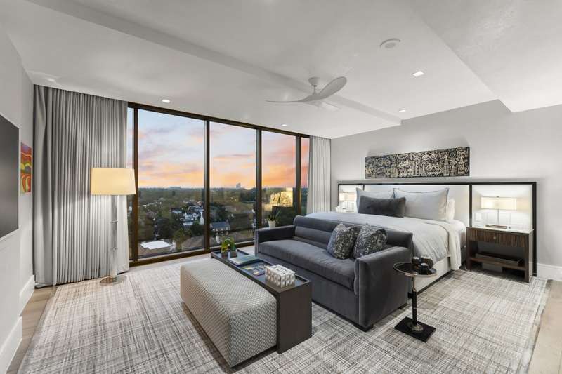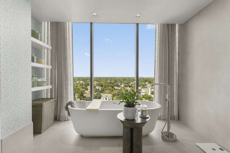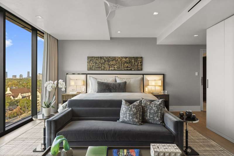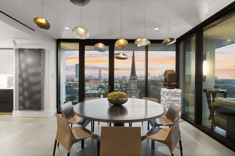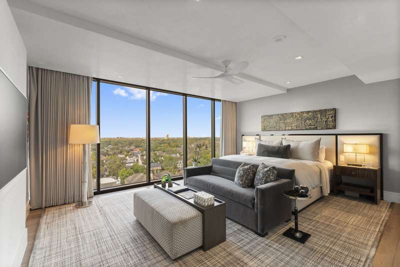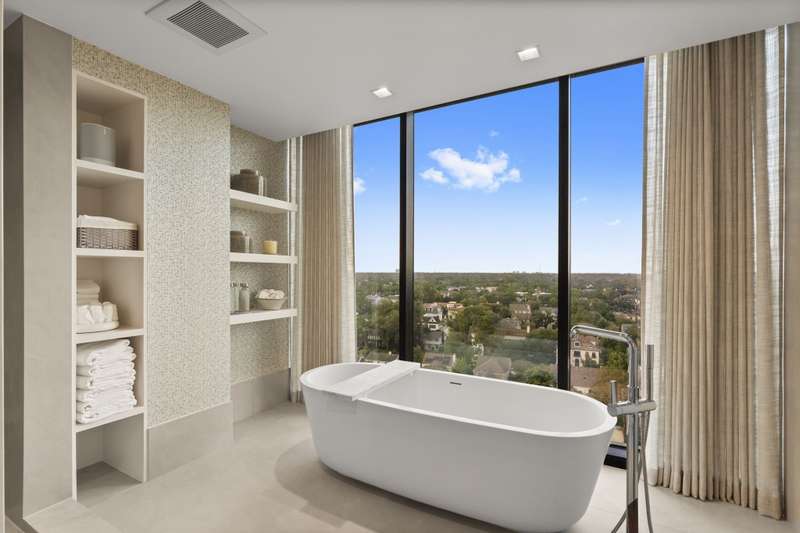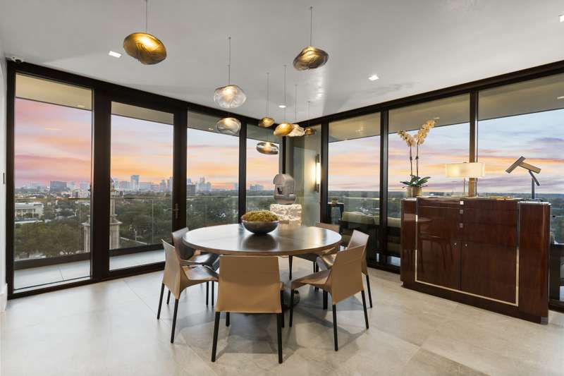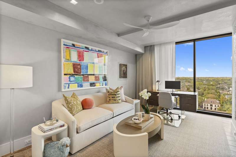 Experience unparalleled luxury in this extensively renovated residence at The River Oaks. Coveted NW corner offers sweeping views over River Oaks treetops, Galleria & Downtown, with soft indirect north light, sunset skies, and a 303sf balcony that seamlessly extends your living space. Inside: Segreto plaster, fumed white-oak millwork, brass inlay, Dekton floors/counters, Poggenpohl cabinetry, Gaggenau appliances, Galley workstation, quartzite bar with wine cooler. Lutron HomeWorks, Palladiom keypads/shades, art lighting, designer hardware. Primary suite with sitting area, boutique closets, spa bath. Full-service building includes valet, concierge, pool, gym, outdoor kitchens, yoga/Pilates, pet spa, dog park. Dedicated guest suites on site allow you to comfortably host family or visitors whenever needed.