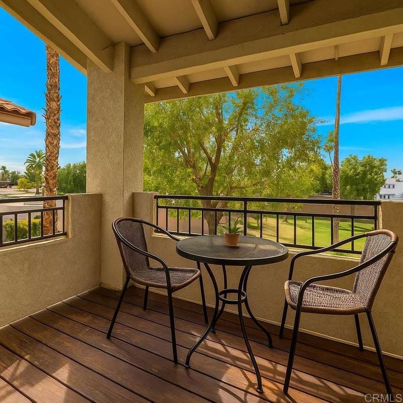 Step into this light, bright unit featuring vaulted ceilings, a private balcony, and an easy, open floorplan that lives larger than its footprint. The unit has been freshly painted and includes a new AC system, new electrical panel, updated bathroom, and all appliancesincluding washer and dryerconvey, making this a truly turnkey opportunity. Enjoy the convenience of a private laundry room, generous primary walk in closet, 2 dedicated parking spaces, and a prime location just minutes to the I-10, top-rated restaurants, retail shops, PGA West and Indian Wells Tennis Garden. The community offers an array of resort-style amenities including multiple pools and spas, tennis courts, a small fitness center, and a meeting room. HOA fees cover water, trash, exterior building maintenance (HOA scheduled to repaint the exteriors soon), and roof maintenance for worry-free living. Whether youre looking for a full-time residence, vacation getaway, or investment property, this well-appointed unit is a must-see.