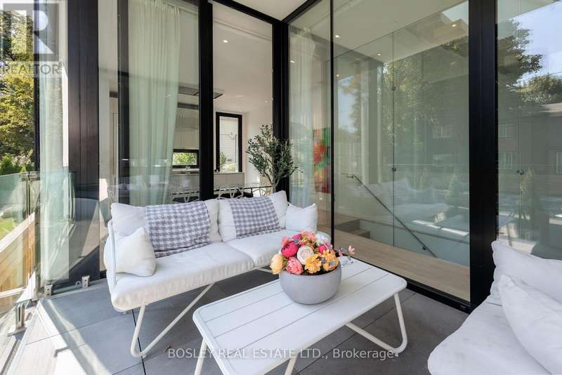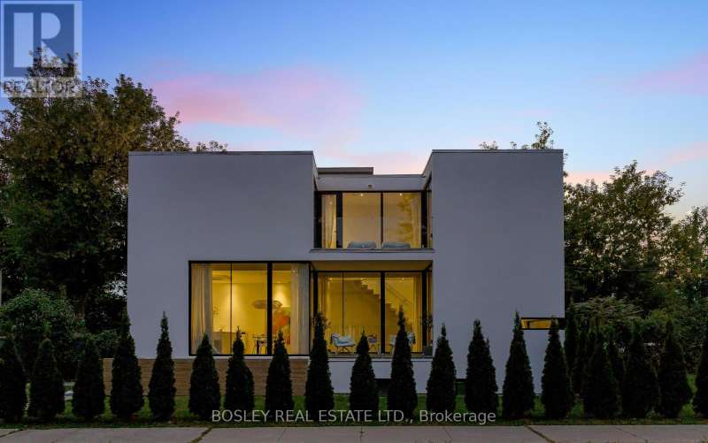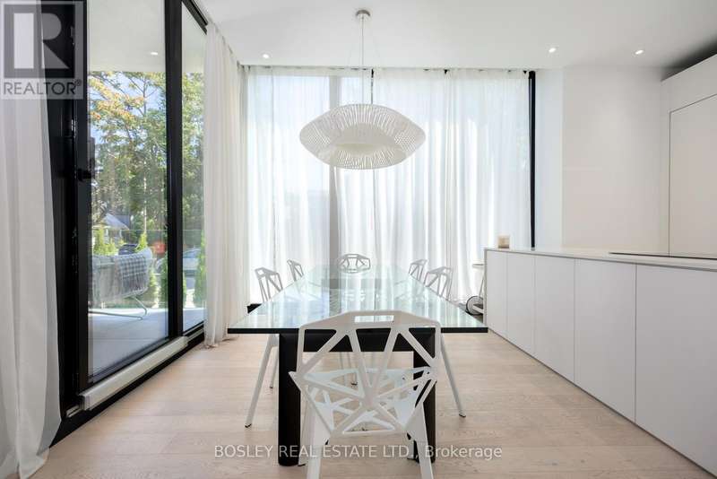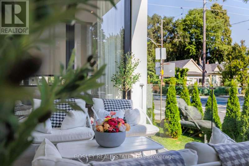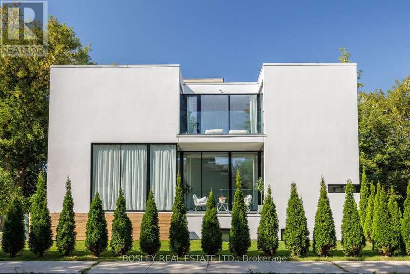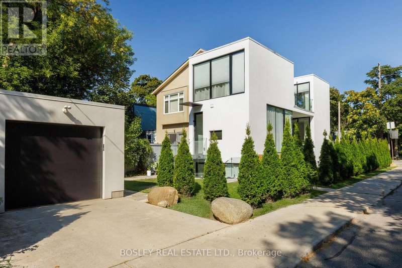 The Lighthaus....Designed by minimalist architect Johnson Chou, this 4 bedroom airy light filled wonder is like nothing else. A rare corner lot wrapped in 30+ cedars gives true privacy while floor to ceiling windows fill every level with daylight. Chou's attention to detail lends itself to perfect calming spa like environments. The Lighthaus is no exception. The roof sheltered central courtyard slides fully open so the 10 ft plus main floor becomes one seamless indoor/ outdoor room. Designed to flow together, each room draws you to the next with delight and excitement. A sculptural floating stair with a full height glass wall anchors the interior. The Lighthaus is detached with its own matching detached garage. 3 luxurious levels each with their own tailored outdoor space. Upstairs the serene primary suite adds 12 ft of custom wardrobes and a sunny terrace with a skylit second bath just down the hall. The bright lower level lives above grade thanks to a sunken courtyard and backyard walkout- ideal for guests, office or play. The space can be expanded to entertain or it can be drawn behind breezy curtains to cocoon yourself in privacy and softness. Practical perks, (garage + private drive, tankless hot water, central HVAC with humidifier and NEST wifi enabled controls) keep life easy. Surrounded by the most sought after schools, Earl Haig and Monarch Park, this lighthaus is surrounded by ravines and parks. It is a short stroll to the Danforth where the culinary delights are ever expanding. A few minutes drive to the beach and close to the subway it is tucked in one of the most convenient and leafy pockets in the city. It is a rare gem, like a purple taaffeite, barely ever seen and almost never for sale. Lighthaus lives as beautifully as it looks. (id:7434)