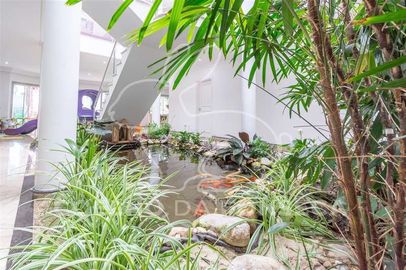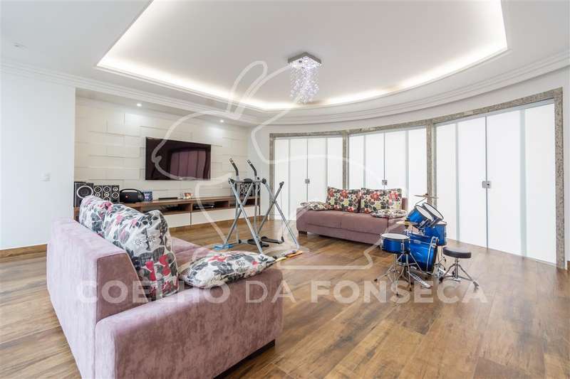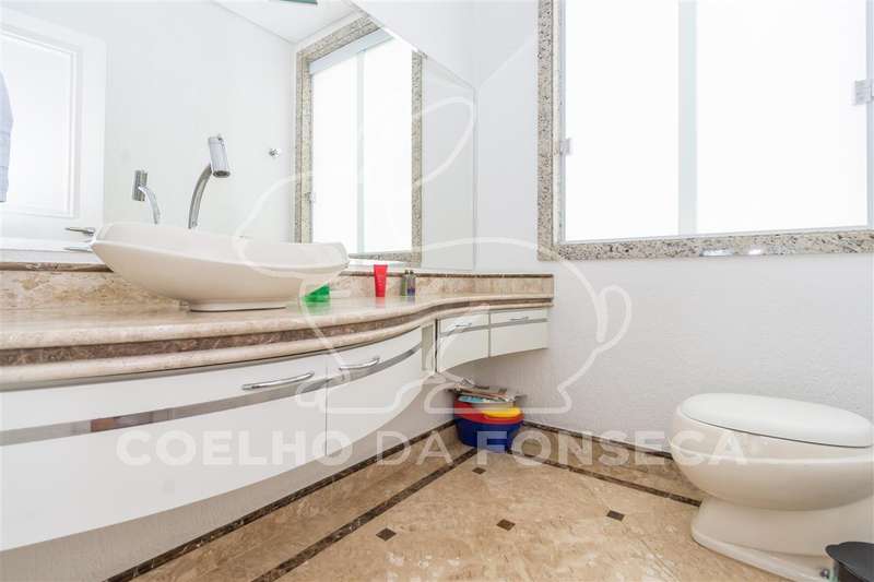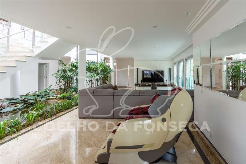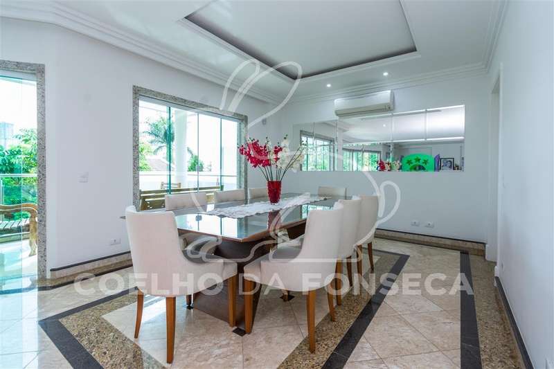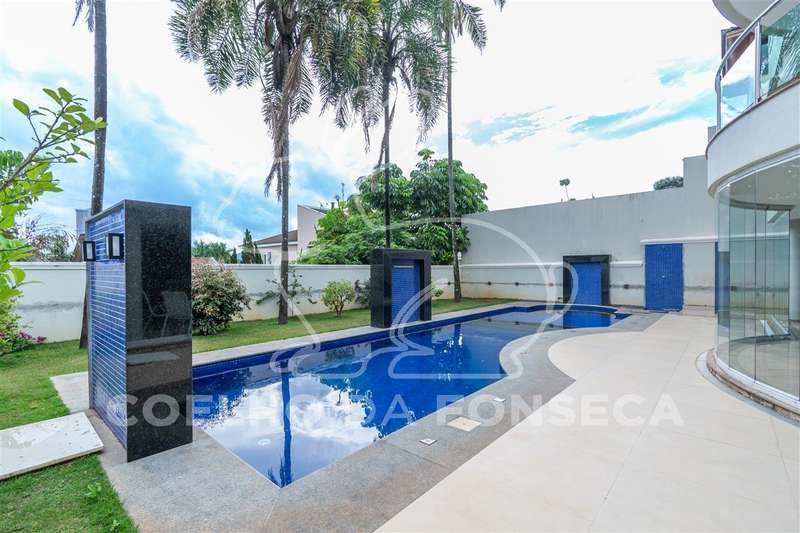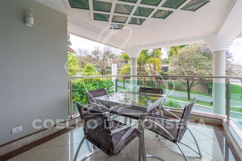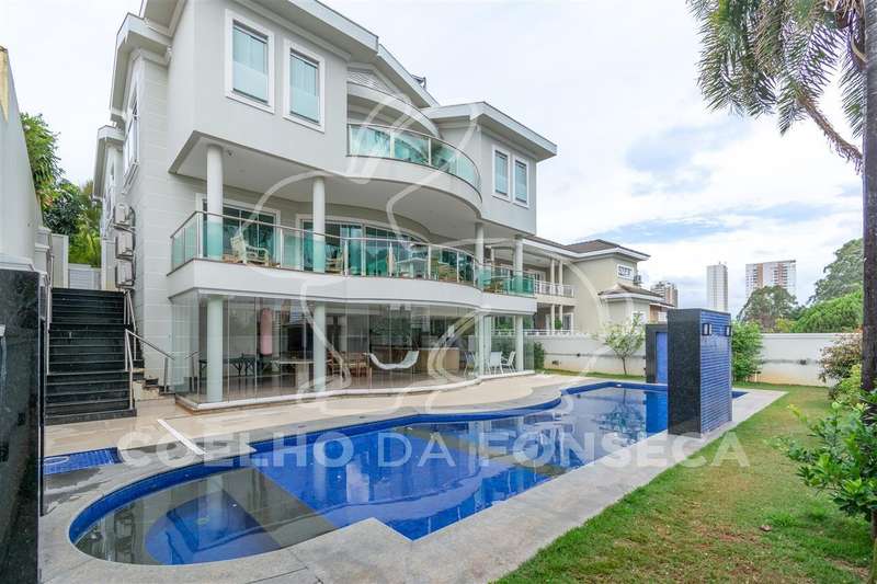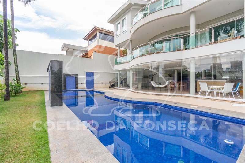Excelente condomínio, total infraestrutura de lazer. Imóvel com ambientes amplos, elevador panorâmico com sistema hidráulico, living para 3 ambientes sendo um com lareira, sala de jantar, copa e cozinha, lavabo, escritório, 5 suítes com closet, área de serviço, dependência de empregada com 2 suítes, podendo ser utilizada para hospedes. Ar condicionado (quente e frio) em todas as suítes, salas, escritório e salão de festa. Ótima área de lazer com salão de festas, ambiente para sala de estar, área gourmet, piscina aquecida e sauna.
