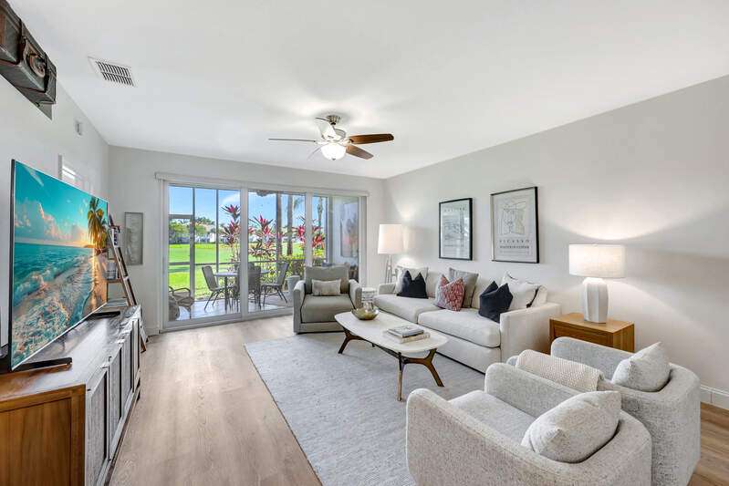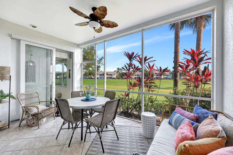 THE BEST DEAL IN THE STRAND WITH $46,000 IN PRICE IMPROVEMENTS! LUXURY MEETS VALUE IN THIS RECENTLY UPDATED FIRST-FLOOR CONDO WITH STUNNING GOLF COURSE VIEWS! Welcome to effortless luxury in this exceptional 2-bedroom + den, 2-bath first-floor unit, perfectly positioned on the 7th hole with a desirable northern rear-exposure in the highly sought-after Wedgewood at The Strand community. Step inside and be wowed by the brand-new flooring throughout and freshly painted interiors, setting the stage for a bright, airy, and inviting space. The open-concept layout is designed for both relaxation and entertaining, seamlessly connecting the stylish living area to a beautiful kitchen featuring new stainless-steel appliances, a farmhouse sink, new garbage disposal, and even a cozy breakfast bar. The versatile den offers endless possibilities-use it as a TV lounge, home office, or an additional guest retreat. Both bathrooms have been completely remodeled with permits, showcasing modern finishes and thoughtful design. Additional upgrades include new ceiling fans, light fixtures, a new water heater, and a new washer & dryer. Enjoy breathtaking golf course views from your spacious screened lanai, the perfect spot for morning coffee or sunset unwinding. This home also boasts new hurricane-impact windows and sliders, a newer roof, updated gutters and landscaping, plus a 1-car detached garage for added convenience. Located in one of Naples' premier golf communities, The Strand, this home offers an optional membership to the prestigious 27-hole championship golf course. The social membership grants access to a state-of-the-art fitness center, rejuvenating spa, junior Olympic-sized pool, multiple top-tier dining options, social clubs, and a variety of recreational activities including croquet, basketball, bocce ball, pickleball, and tennis. Opportunities like this don't last long-schedule your private showing today and start living The Strand Lifestyle!!