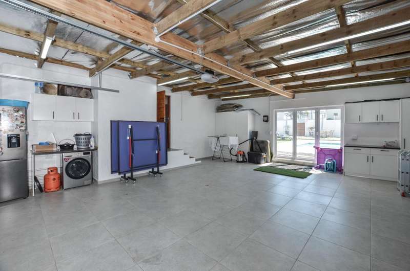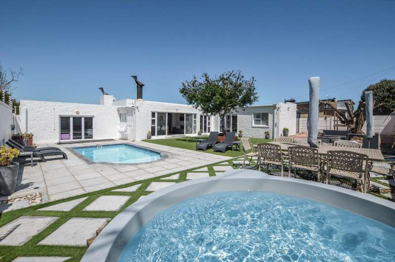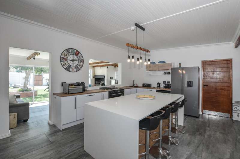 SOLE AND EXCLUSIVE!! We are proud to present this stunning, renovated 4-bedroom home, ideally located in the older part of Yzerfontein! Perfect for entertaining, the property boasts a range of outdoor spaces, including a spacious backyard with a swimming pool, a Wood-fired hotpot, a braai boma, and a playground for kids. The modern open-plan kitchen leads to a braai area, perfect for indoor-outdoor living. The cozy living area with a fireplace is ideal for winter nights. For practical living, the automated double garage offers direct access to the house and sliding doors to the backyard, which can also be used as a play area in colder weather. The main en-suite and kiddies' rooms are separate from two guest bedrooms, making it ideal for holiday rentals or extended family stays. Extra features: Three air-conditioned bedrooms, Heated flooring, The heated towel rail in the main bedroom Built-in cupboards CCTV cameras, Electric fencing, DStv, Clear bars Blinds. Water tanks This home is currently used for holiday accommodation as a good income! Please make an appointment to view this stunning entertaining property!