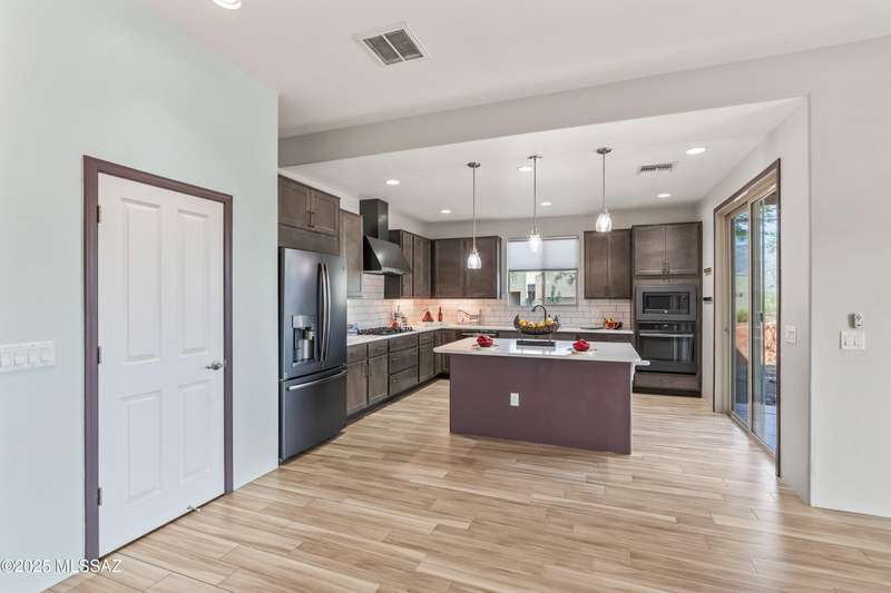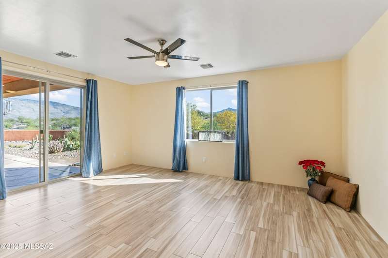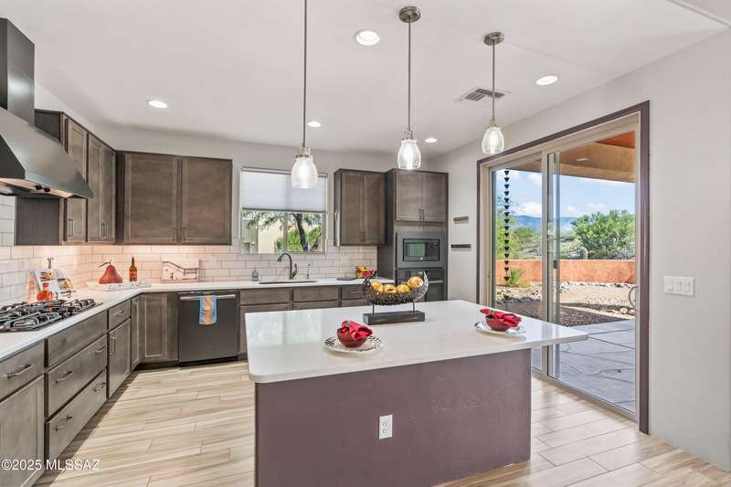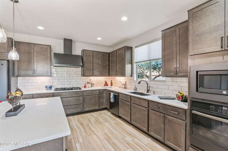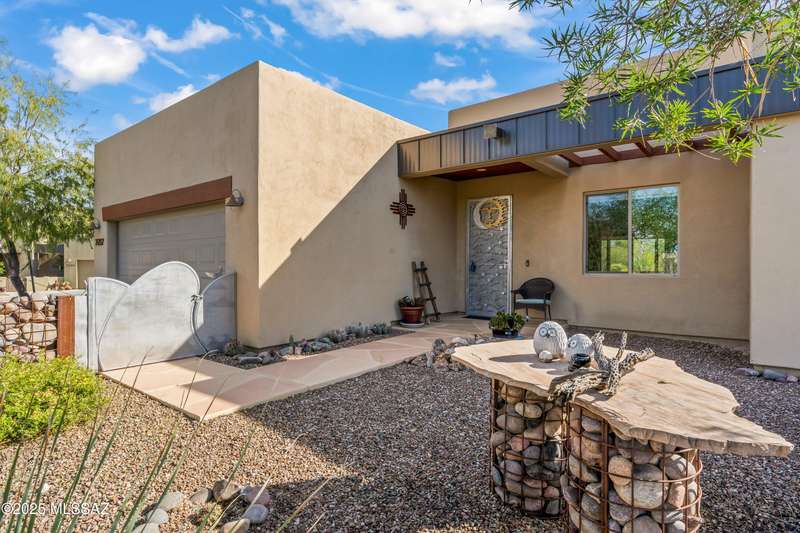 Range price, seller will accept or counter offers between $599,900-$639,900. Rare find in Academy Village! Double lot, 1 HOA fee, .41 acre offers plenty of room to build a casita & provides privacy. Spectacular views from every room in this original owner home. Bright, open floor plan features artistic elements & is perfect for entertaining. SW contemporary design includes wood look tile flooring throughout, ceiling fans, quartz countertops, 5 burner gas cooktop, island, & black S/S appliances. Spacious primary bedroom w/sitting area, luxury bath & walk in closet. Enjoy a spacious front courtyard w/handcrafted Gabion wall, perfect for sunset viewing. Experience year round Tucson living on your wrap around slate patio perfect for outdoor dining or just taking in majestic mtn views!!