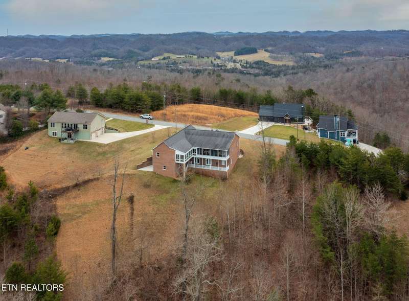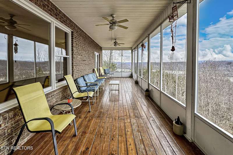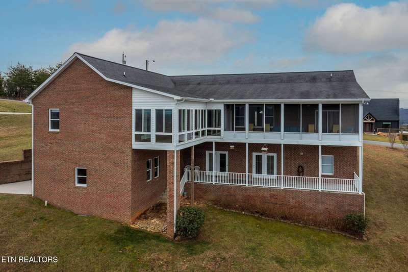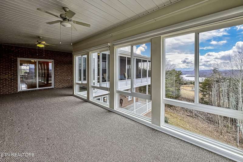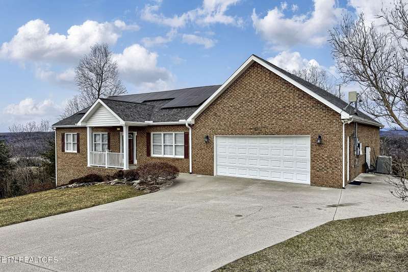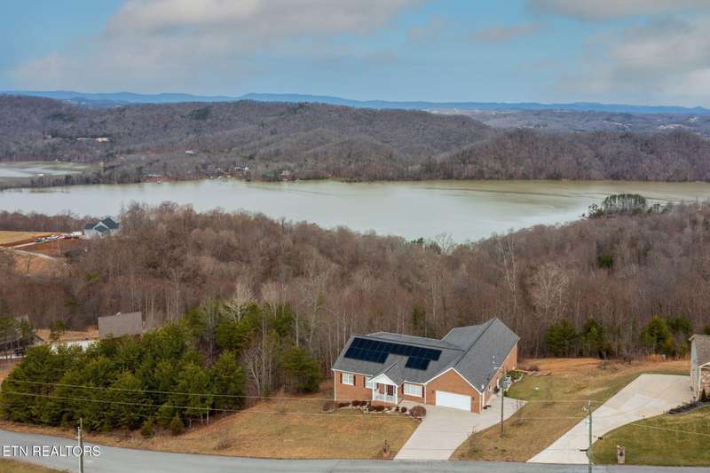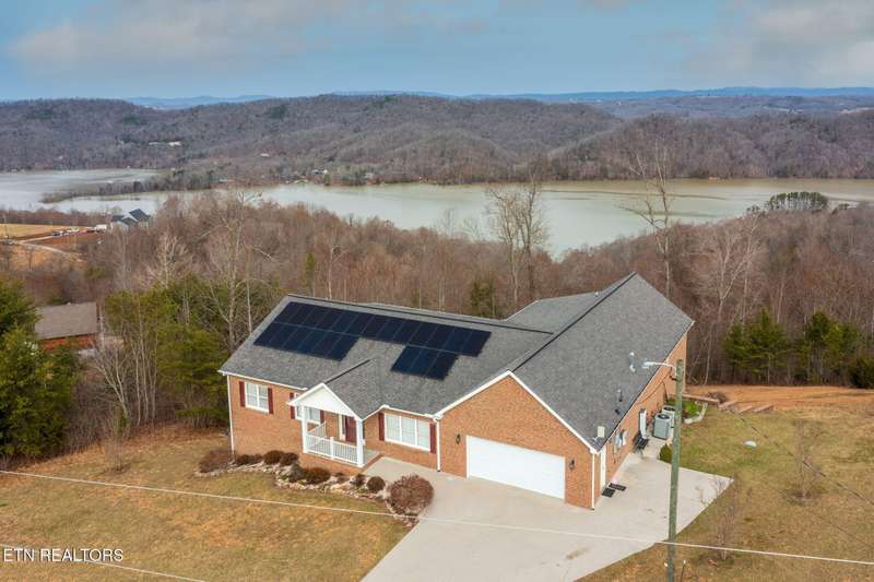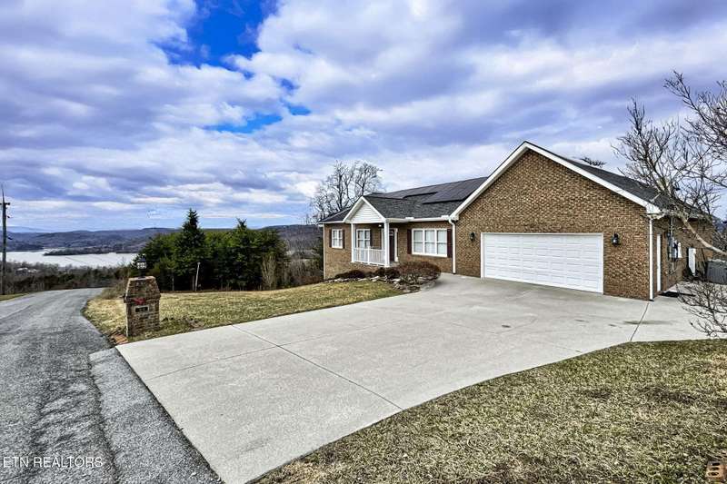 This remarkable home showcases breathtaking panoramic views of Norris Lake and Cumberland Gap through walls of windows that flood the open concept layout with natural light. The heated/cooled sunroom features floor-to-ceiling glass for sweeping vistas, while the screened-in deck offers a perfect setting to soak in the scenery. The innovative Generac system with solar panels provides reliable backup power while cutting utility bills in half - a smart investment for both peace of mind and long-term savings. The spacious master suite includes a flex reading room, walk-in shower with man made marble and glass doors , double vanity, and oversized closet. The kitchen impresses with stainless appliances, granite countertops, island seating, and dual pantries. Downstairs you'll find a large family/rec room and storage area. Modern conveniences include a camera system and a surround sound system on the main level. Parking options abound with a two-car garage (10ft ceilings), basement one-car garage with workshop, and room for RV/boat parking. Enjoy private neighborhood lake access with boat launch in addition to Beach Island Marina being under 10 minutes away and Hickory Star Marina just 15 minutes away.