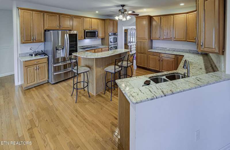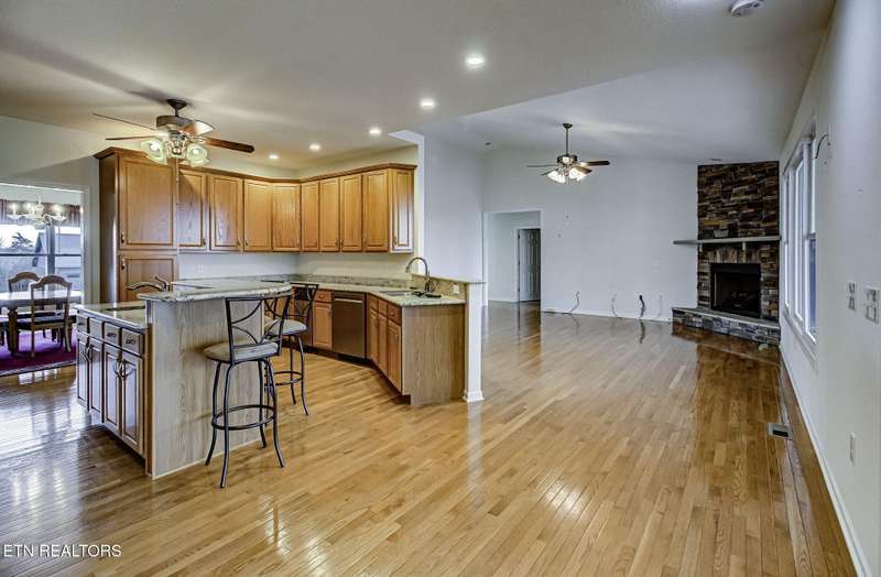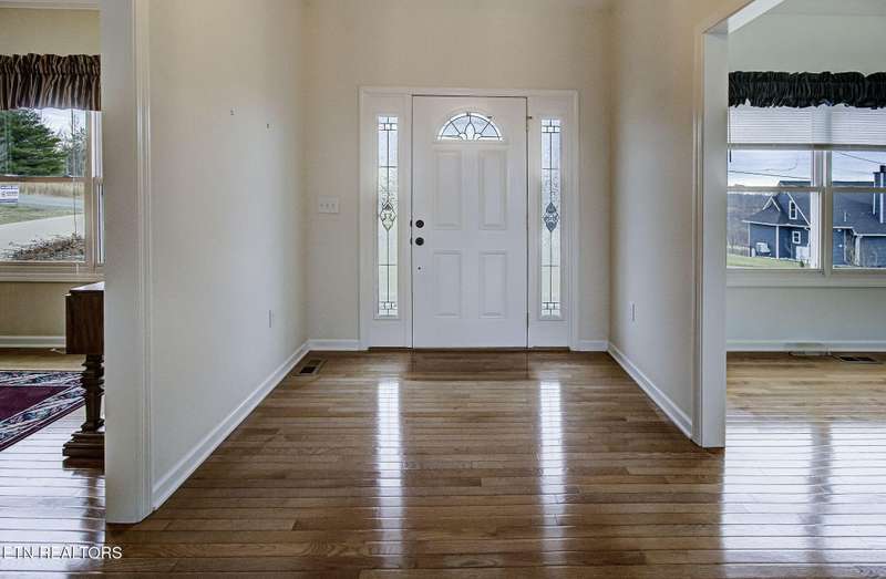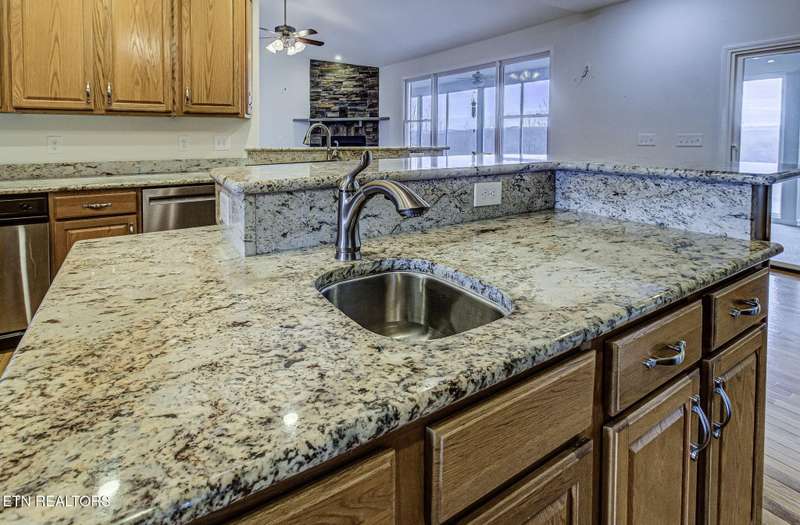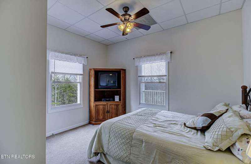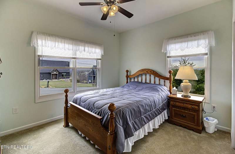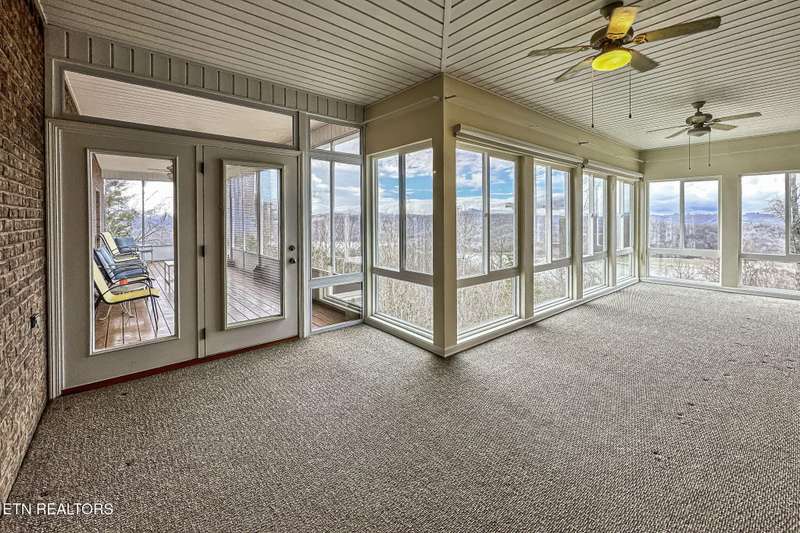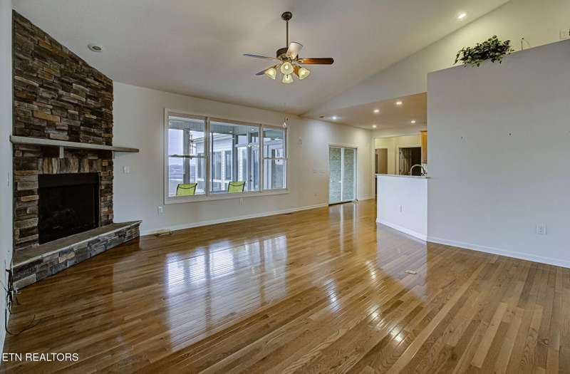 This remarkable home showcases breathtaking panoramic views of Norris Lake and Cumberland Gap through walls of windows that flood the open concept layout with natural light. The heated/cooled sunroom features floor-to-ceiling glass for sweeping vistas, while the screened-in deck offers a perfect setting to soak in the scenery. The innovative Generac system with solar panels provides reliable backup power while cutting utility bills in half - a smart investment for both peace of mind and long-term savings. The spacious master suite includes a flex reading room, walk-in shower with man made marble and glass doors , double vanity, and oversized closet. The kitchen impresses with stainless appliances, granite countertops, island seating, and dual pantries. Downstairs you'll find a large family/rec room and storage area. Modern conveniences include a camera system and a surround sound system on the main level. Parking options abound with a two-car garage (10ft ceilings), basement one-car garage with workshop, and room for RV/boat parking. Enjoy private neighborhood lake access with boat launch in addition to Beach Island Marina being under 10 minutes away and Hickory Star Marina just 15 minutes away.