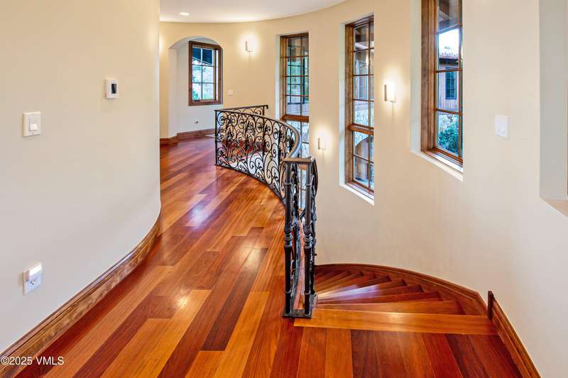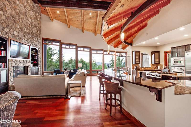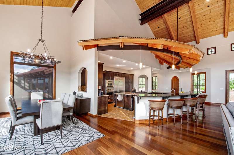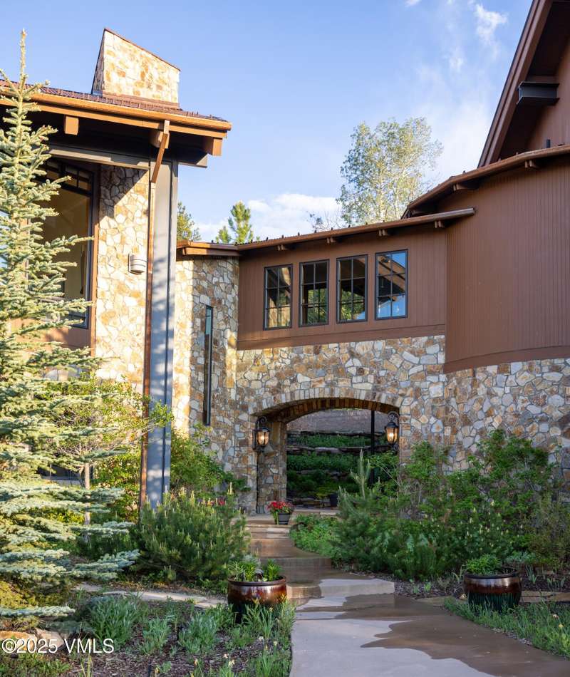 Exuding the charm of an authentic Tuscan villa, this architectural masterpiece sits gracefully on 10 forested acres in the exclusive, gated enclave of Travis Creek. The residence's distinctive design features two striking curved wings, each with dramatic walls of windows that capture breathtaking views and bathe the interior in natural light. A grand elevated walkway serves as a stunning bridge between the welcoming main living space and the secluded primary suite, offering both architectural drama and a sense of retreat. Meticulous stonework, elegant arched lines, and generous use of glass create a seamless connection to the surrounding landscape, while providing every modern comfort. Impressive, sweeping curved facades with expansive window walls embrace the forested setting. Open-concept living spaces highlight soaring ceilings and panoramic vistas Multiple outdoor living and entertaining areas, including patios, fire pits, and lush lawns. Thoughtfully placed for year-round enjoyment, whether entertaining or seeking tranquility. Located just minutes from Edwards, with world-class skiing and easy airport access close by, this is one of the area's finest homes-a rare opportunity to experience unmatched character and quality in the Colorado Rockies. Truly, a showpiece that must be seen to be fully appreciated.