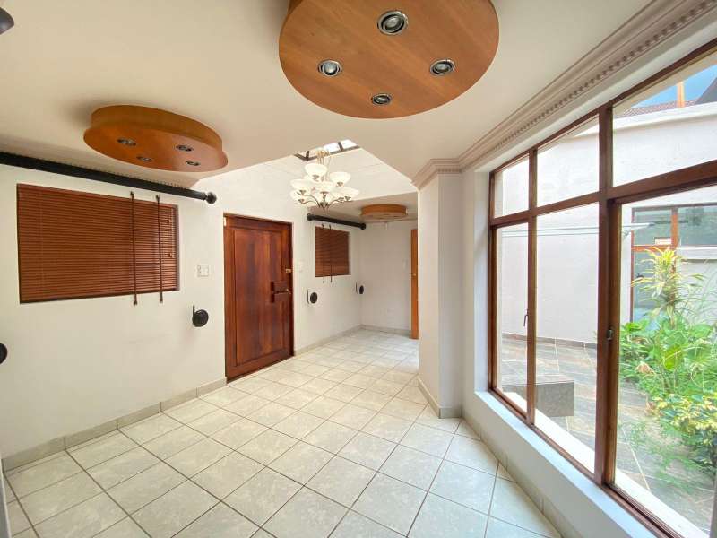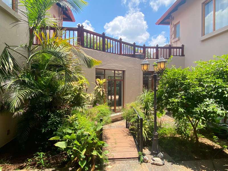 IMMERSE YOURSELF IN ELEGANCE AT BIRDWOOD ESTATE Nestled within the prestigious Birdwood Estate, this home is more than just a residence?Çöit's a sanctuary of luxurious living and convenience. The entrance unfolds into a welcoming foyer, bathed in natural light from a skylight overhead. Adjacent to the entrance, a separate study provides the ideal space for the professional, offering privacy without compromise. The heart of this home is the open-plan kitchen with solid cherry wood cupboards, seamlessly connecting with the living areas. Exit onto the central garden ?Çö an oasis of tranquility. The downstairs living areas also exit onto the private undercover braai and entertainment area, perfect for spending time with family and friends. Upstairs unveils a separate family/entertainment room, featuring a built-in bar and a guest toilet. Step onto the balcony and soak in the peace and quiet of the central garden. With two bedrooms all en-suite on each floor gives you a choice of main bedrooms on either level, two of the rooms also boasts jacuzzi baths, this residence adapts to your lifestyle, offering flexible living arrangements. Parking is effortless with three automated garages, ensuring your vehicles are secure and accessible. Additional storage meets organizational needs, while separate domestic quarters add an extra layer of convenience. Enjoy exclusive access to the facilities offered by the estate ?Çö a fully equipped gym, squash, and tennis courts await your active pursuits. A communal pool is perfect after a long day's work. This isn't just a home; it's a lifestyle. Seize the opportunity to make this Birdwood Estate residence yours.