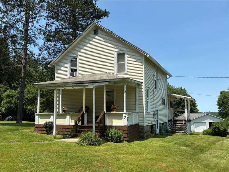 DREAMING OF YOUR OWN PRIVATE PARADISE? Tucked in a peaceful, secluded setting but still within the borough limits, this property includes .80 +/- acre and a two-story home, along with an oversized detached garage. The grounds are stunning surrounded by trees and a meticulously maintained lawn and landscaping. This two-story home features spacious rooms, three bedrooms, one bathroom, and gas forced air heating. There is a good amount of cupboard space in the kitchen and a separate dining area. Laundry area conveniently located off the kitchen with a full bath off the laundry. The three bedrooms are located on the second floor. There is a 24' x 32' detached garage with room for a workshop too. Wonderful property for homesteading with plenty of nearby fruit trees including apples, cherries, peaches, plums, and pears along with blueberry bushes. Close to the Knox Kane Rail Trail, so no excuse for skipping your daily exercise routine. Nearby attractions include Kinzua Bridge State Park, Kinzua Dam, Allegheny Reservoir, and Bradford Airport. 3 AND 4 ERICKSON DR., MT. JEWETT ARE CURRENTLY ASSESSED AS ONE PARCEL. IF THIS PARCEL IS SOLD SEPARATELY FROM 4 ERICKSON DR., MT. JEWETT, A SUBDIVISION OF THE PROPERTY WILL BE REQUIRED ALONG WITH MUNICIPAL APPROVAL PRIOR TO CLOSING. THE ACTUAL LOT SIZES WILL BE DETERMINED AT THE TIME OF THE SUBDIVISION. SELLER WILL BE RESPONSIBLE FOR THE SURVEY AND ASSOCIATED COSTS FOR THE SUBDIVISION.
