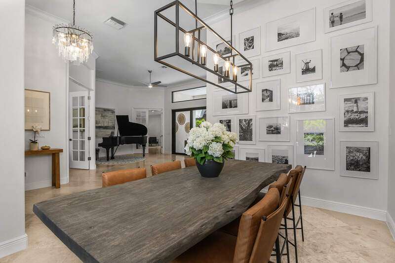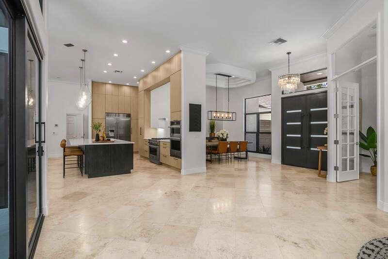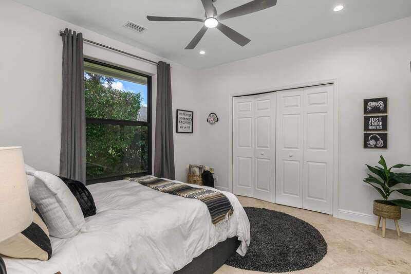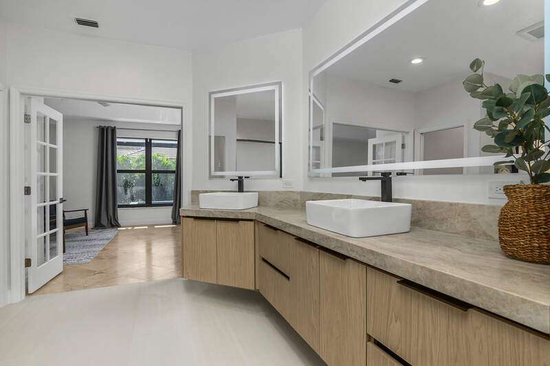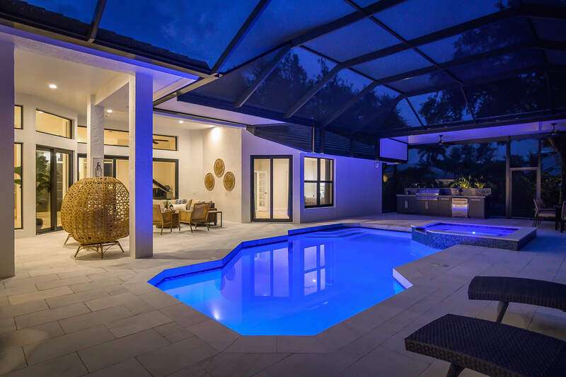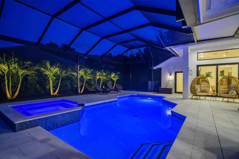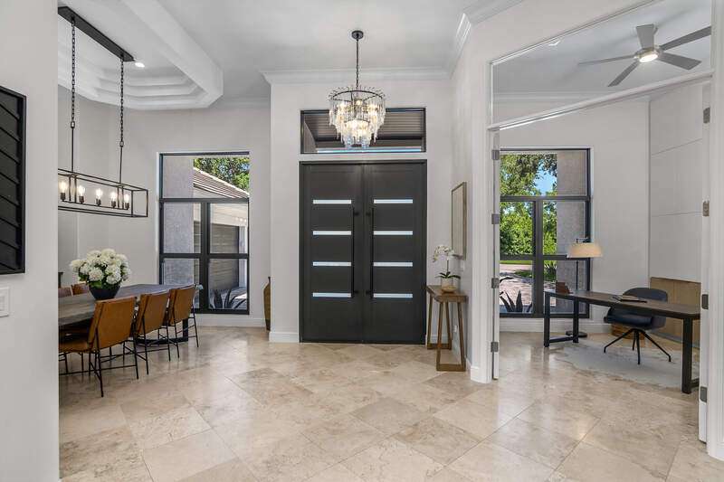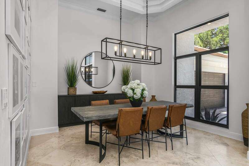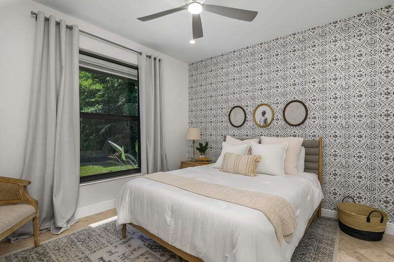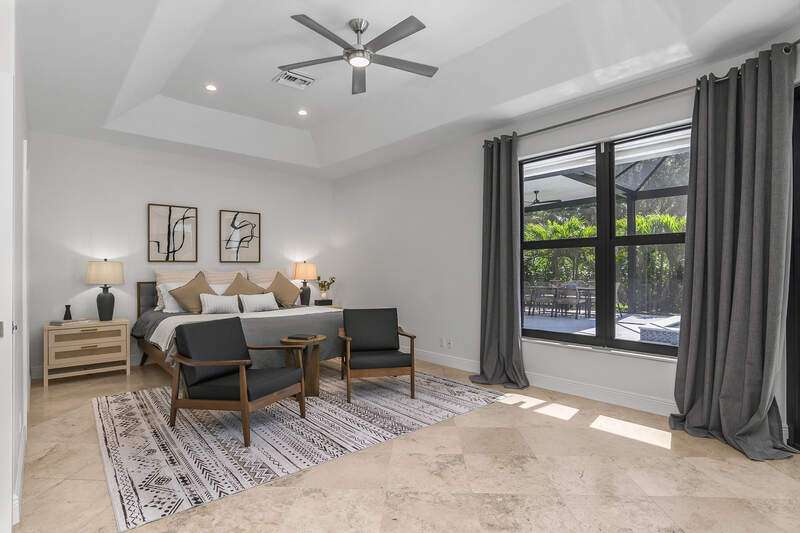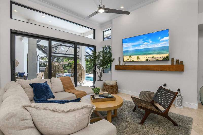 Luxurious, private, and serene, this beautifully renovated home is an oasis nestled in a desirable, quiet location within the heart of the coveted neighborhood of Monterey. Thoughtfully updated & meticulously maintained both inside and out, this home enjoys an abundance of light with soaring 11.5 foot ceilings, top-of-the-line finishes and premium appliances. At the heart of the home, a custom 11 foot island anchors the well-equipped chef's kitchen with sleek floor-to-ceiling custom cabinetry with NEW JennAir RISE appliances, including 48" refrigerator, gas range and double wall oven with convection/microwave. The renovated bathrooms have been gorgeously updated with Taj Mahal quartzite countertops and custom cabinetry. A dedicated office with floor-to-ceiling custom built-in cabinetry offers a stylish and functional work/flex space. Step outside to your own private sanctuary, complete with NEW stunning picture-window screen cage with unique & functional shade/rain protection roof systems, NEW outdoor kitchen, & NEWLY refinished pool/spa, all framed by lush hedges and tropical palms with dramatic landscape lighting. Countless upgrades provide efficiency as well as peace of mind, including NEW impact windows & doors, NEW A/C, NEW instant hot water heater, NEW pool equipment, NEW paver driveway, newer roof and more! With 24-hour gate guard, 3 har tru tennis courts, community pool/clubhouse, sport/pickleball court, neighborhood events & just minutes to beaches, downtown, shopping, & schools - Make this your next move!