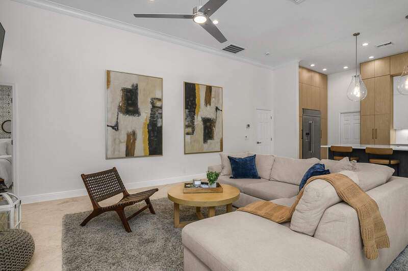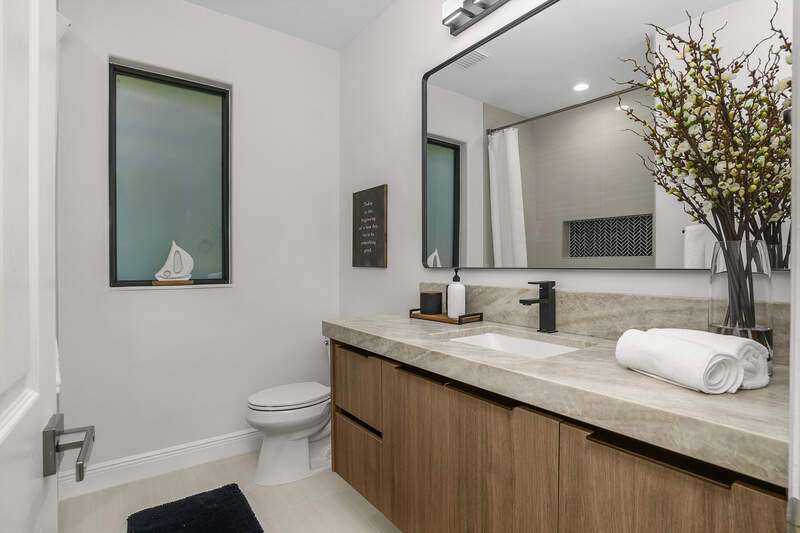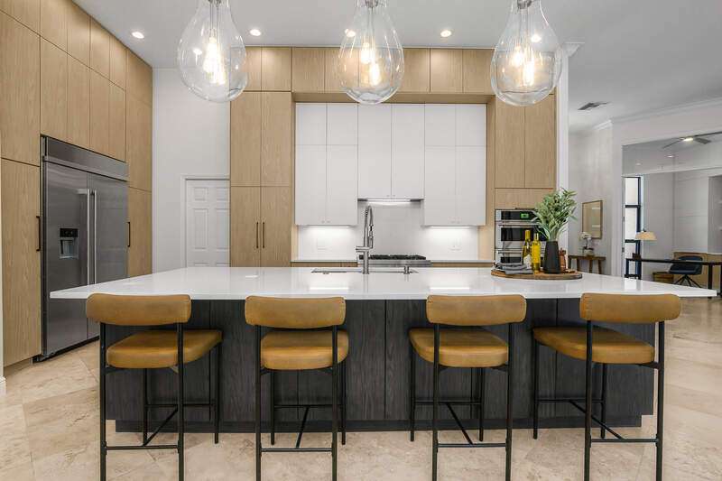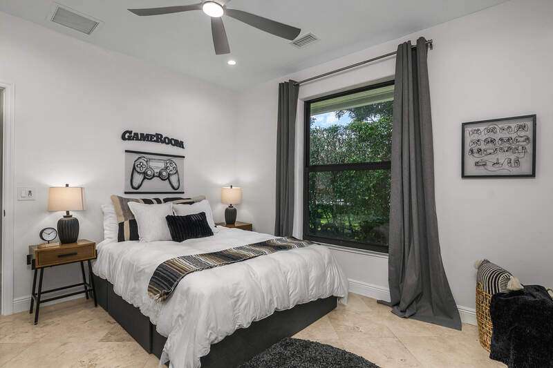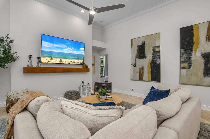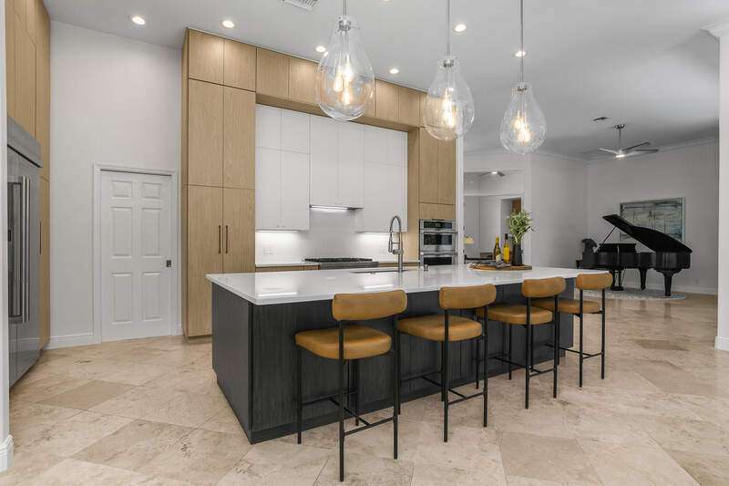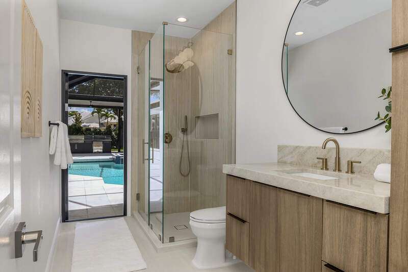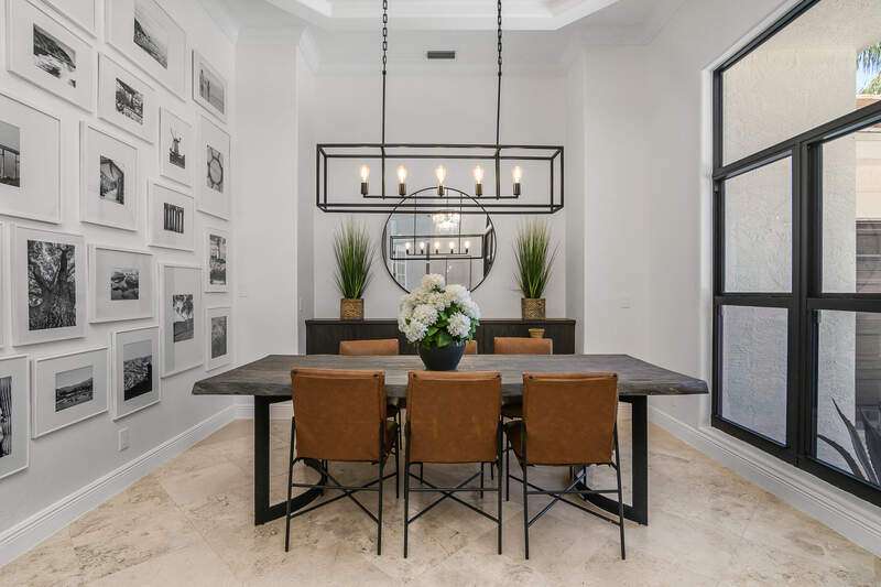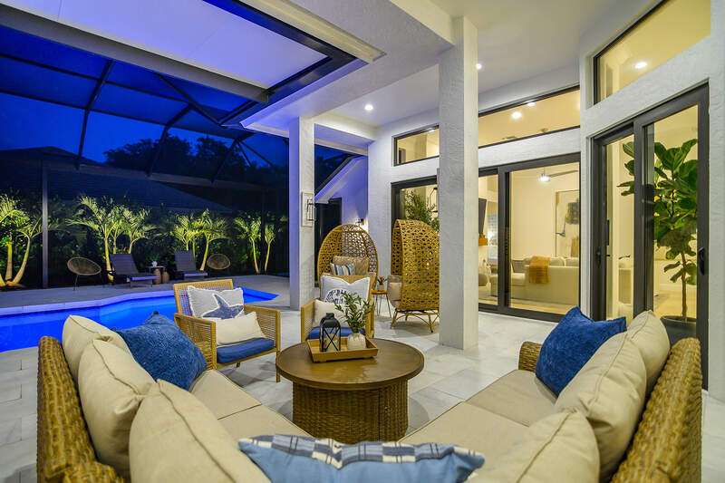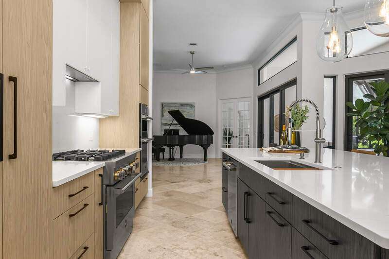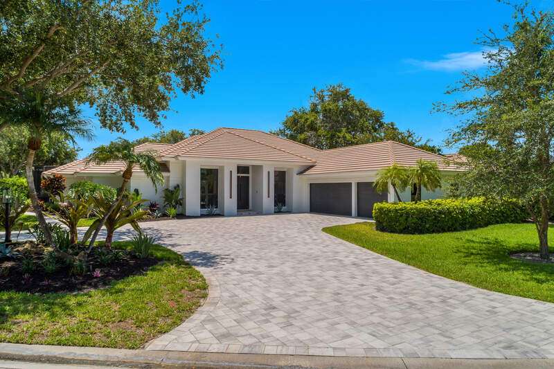 Luxurious, private, and serene, this beautifully renovated home is an oasis nestled in a desirable, quiet location within the heart of the coveted neighborhood of Monterey. Thoughtfully updated & meticulously maintained both inside and out, this home enjoys an abundance of light with soaring 11.5 foot ceilings, top-of-the-line finishes and premium appliances. At the heart of the home, a custom 11 foot island anchors the well-equipped chef's kitchen with sleek floor-to-ceiling custom cabinetry with NEW JennAir RISE appliances, including 48" refrigerator, gas range and double wall oven with convection/microwave. The renovated bathrooms have been gorgeously updated with Taj Mahal quartzite countertops and custom cabinetry. A dedicated office with floor-to-ceiling custom built-in cabinetry offers a stylish and functional work/flex space. Step outside to your own private sanctuary, complete with NEW stunning picture-window screen cage with unique & functional shade/rain protection roof systems, NEW outdoor kitchen, & NEWLY refinished pool/spa, all framed by lush hedges and tropical palms with dramatic landscape lighting. Countless upgrades provide efficiency as well as peace of mind, including NEW impact windows & doors, NEW A/C, NEW instant hot water heater, NEW pool equipment, NEW paver driveway, newer roof and more! With 24-hour gate guard, 3 har tru tennis courts, community pool/clubhouse, sport/pickleball court, neighborhood events & just minutes to beaches, downtown, shopping, & schools - Make this your next move!