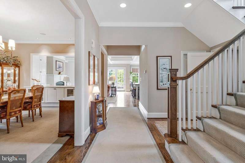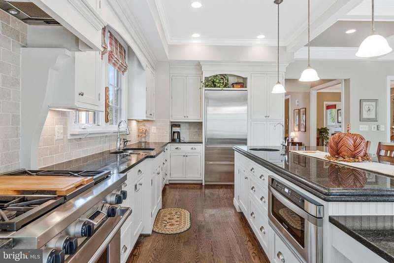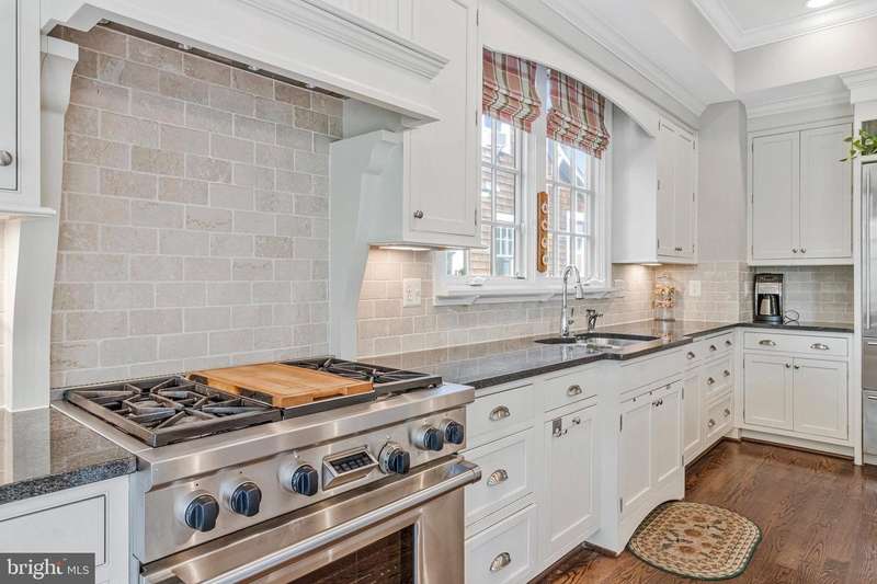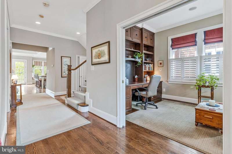 Custom & Spectacular. Built in 2005 and beautifully maintained, this center-hall Craftsman-style bungalow offers exceptional quality, comfort, and smart design across three finished levels. Featuring two-zone HVAC, a dumbwaiter, a whole-house central vacuum system, a Naven instant hot water heater, an environmental pure water filter system, and surround sound, this home blends timeless architecture with modern convenience. Main level The heart of the home is the open concept island gourmet kitchen with crown molding, opening to the family room, anchored by a Wolf 4-burner range with griddle, Sub-Zero refrigerator/freezer with icemaker, Sharp under-counter microwave, incognito-panel dishwasher, and a stainless undermount sink with retractable faucet. Dark granite counters with AG edging, self-closing cabinetry, pendant and recessed lighting, and a charming eat-in area with built-in bench seating and storage create a warm and functional space. The family room showcases a coffered ceiling, built-in cabinetry, retractable TV, surround sound, recessed lighting, and dark hardwood floors. French doors open to a 5' x 21' deck overlooking the backyard and driveway. A formal dining room flows seamlessly into the family room, while a cozy sitting room off the foyer offers plantation shutters and a decorative hearth. A main-level office features custom built-ins, surround sound, and plantation shutters. A full bath with a pedestal Kohler sink, Toto toilet, custom tile shower with seat, and wainscoting completes this level. Upper Level A large central hallway with crown molding and a custom carpet runner leads to three spacious bedrooms, including a luxurious owner's suite with a separate sitting room, double closets, built-in bookshelves, and a large walk-in closet with custom storage. The spa-like primary bath boasts marble tile, a glass shower with dual handheld faucets, a double vanity with marble counters, and a private water closet. Two additional bedrooms-each with hardwood floors, ceiling fans, and ample closets-share a marble-topped hall bath. A convenient laundry area with a Blomberg washer and dryer, cabinetry, and attic access completes the upstairs. Lower Level The fully finished basement includes an expansive family room with built-ins, bar, and surround sound, featuring a light granite countertop, Scotsman icemaker, wine fridge, Fisher & Paykel dishwasher, and stainless undermount sink. A bonus bedroom with casement windows, a full bath with marble finishes, a cedar closet, and a dedicated craft room add flexibility. Additional highlights include an 8-foot ceiling height, tiled walkways, and a two-car garage with GarageTek shelving, cabinets, rubber mat flooring, and LiftMaster opener. The utility room houses a Navien instant hot water heater, York furnace, AprilAire dehumidifier, and Environmental Water System filtration. Key Features · Three finished levels with 4+ bedrooms and 4 full baths · Gourmet kitchen with Wolf, Sub-Zero & Sharp appliances · Surround sound, custom built-ins, and plantation shutters throughout · Two laundry centers (upper level & basement) · Two-zone HVAC, whole-house vacuum system, and dumbwaiter · Walk-out lower level with full bar, wine fridge, and bonus bedroom · Two-car garage with custom storage and electric opener · Private deck overlooking backyard and driveway Close to everything and convenience at it's best! Blocks from Metro, moments from National Airport, Dining, shopping and all conveniences. A must see!