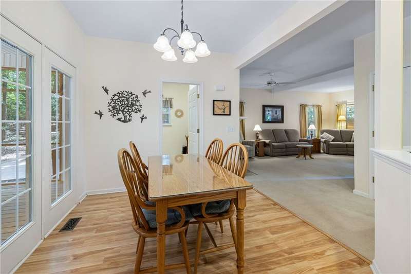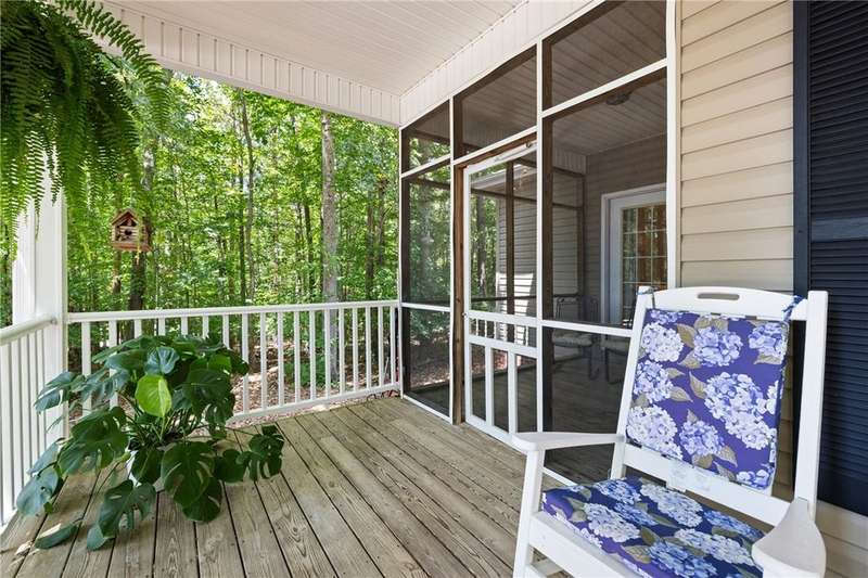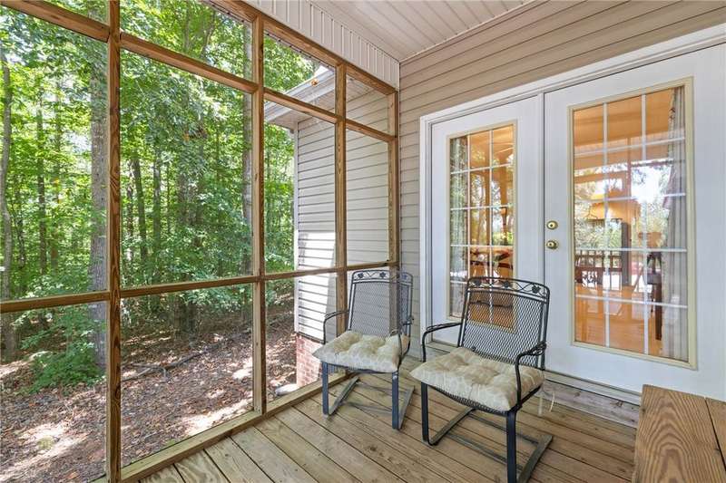 Welcome to this lovely Lake Hartwell area home with winter views of the lake. You will feel the Southern draw the minute you see the porch/breezeway as you walk to the front door. Private screened porch off of primary bedroom is located here. Home offers a nice living room with gas fireplace for the cool spring and summer evenings and a formal dining room. Kitchen is equipped with ample cabinet space for the chef in the family. Breakfast area gives this that cozy country feeling. Primary bedroom is on main level and has two walk-in closets, separate shower and tub and remember, the screened porch to enjoy your morning coffee. Additionally, there is a half bath and a laundry room with sink on this level. You can't miss the fact that there is a larger screened porch here which allows you to relax in your private backyard and watch the deer play. There is an attached double garage on the back of the home as well. Upper level is two guest bedrooms with full bathroom for family or friends. All of this in a guard-gated community with an amazing 18-hole golf course, Chickasaw Point offers so many fun things to do and has wonderful amenities. Community pool, pickleball/tennis courts, walking trails, private beach area, boat ramp, courtesy dock and marina as well as a pavilion to enjoy sunsets on the beach. Overlook restaurant and pro-shop where you can relax and enjoy a great meal. Don't wait, see this home today.