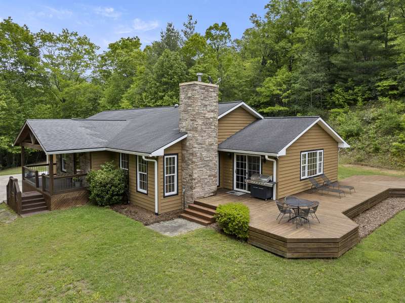 This charming one-owner ranch home nestled on 1.76 acres in the peaceful North Fork Valley, offers 3 bedrooms, 3 bathrooms, and a quiet hilltop location. Just minutes from downtown, Black Mountain golf course, and Lake Tomahawk it combines privacy and tranquility with convenience. The large bright dining room leads to a spacious deck perfect for entertaining and relaxing, while the basement features a large rec room with a pool table, a 3rd bathroom, and a workshop area. There is plenty of room for storage and room for a home gym as well. The upstairs den is equipped with a gas log fireplace, ideal for cozy mountain nights. Updates include new carpet and floors redone (2021) and fresh exterior paint (2020). It's a unique opportunity to create your own mountain retreat in the quaint town of Black Mountain. For movie lovers, this home has some history....it was used in the movie "3 Billboards Outside Ebbing, Missouri." Come make this cozy mtn home yours today! NO restrictions on STR!!
