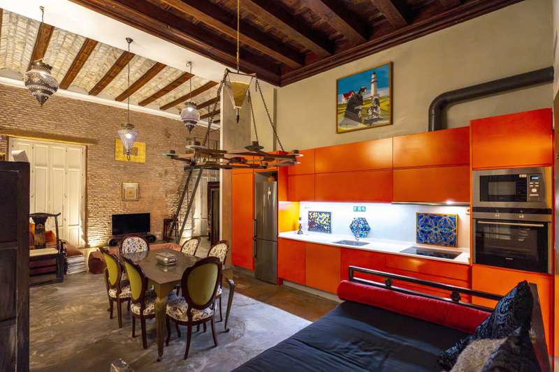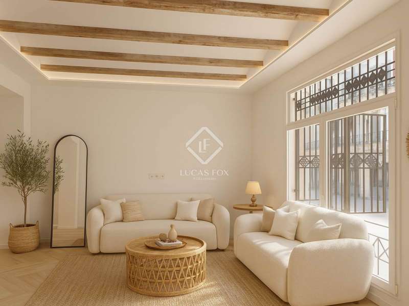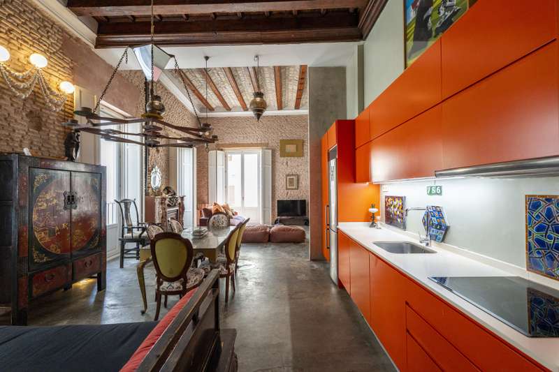 In a classic palace of the Valencian bourgeoisie, protected by culture, but rehabilitated internally, there is this unique and exclusive house, in which history is breathed and, at the same time, modernity. The house has been completely rehabilitated, like the building in which it is located, and it has been carried out with an emerald design, in which the history and the modernity are mixed, with walls of old caravista brick rehabilitated, ceilings with beams in some areas and almost 5 meters high, and at the same time, last technology in mechanisms of air conditioning, locks, insulation, kitchen, etc. The house has south-east orientation, with a lot of natural light and cross ventilation from the sea, and gives a spatial feeling out of the ordinary. When you enter this house, the first thing you have is a feeling of peace and tranquility very difficult to find in the historical center of no city. The building, classic cut, and protected by culture, has been completely rehabilitated less than 15 years ago, has an elevator, and combines historical elements in its common areas, with modern elements. The area where it is located is one of the quietest in the historic center of Valencia, but, at the same time, close to all commercial, cultural or administrative services, very close also to the garden of Turia, lung of Valencia and perfectly communicated.