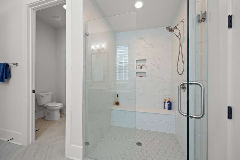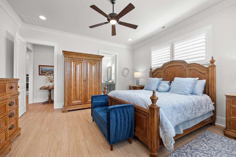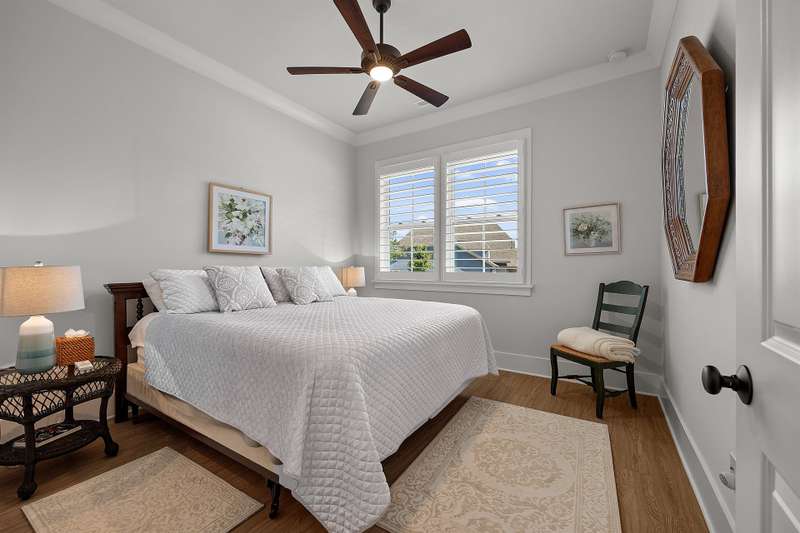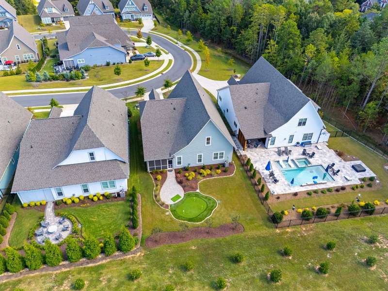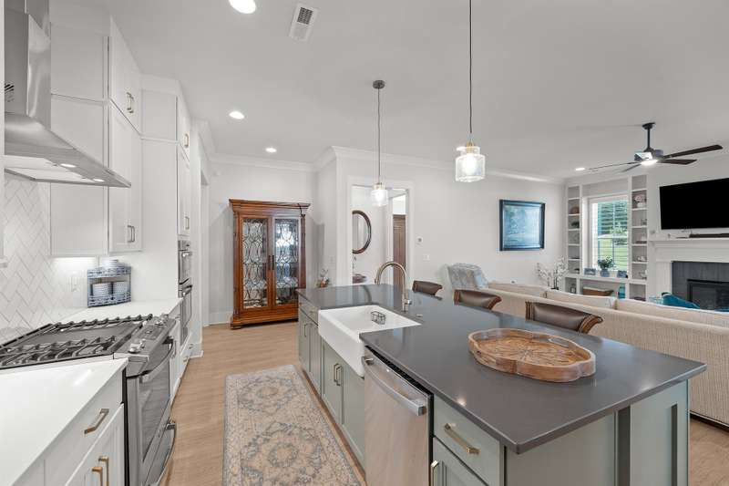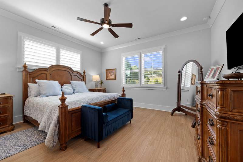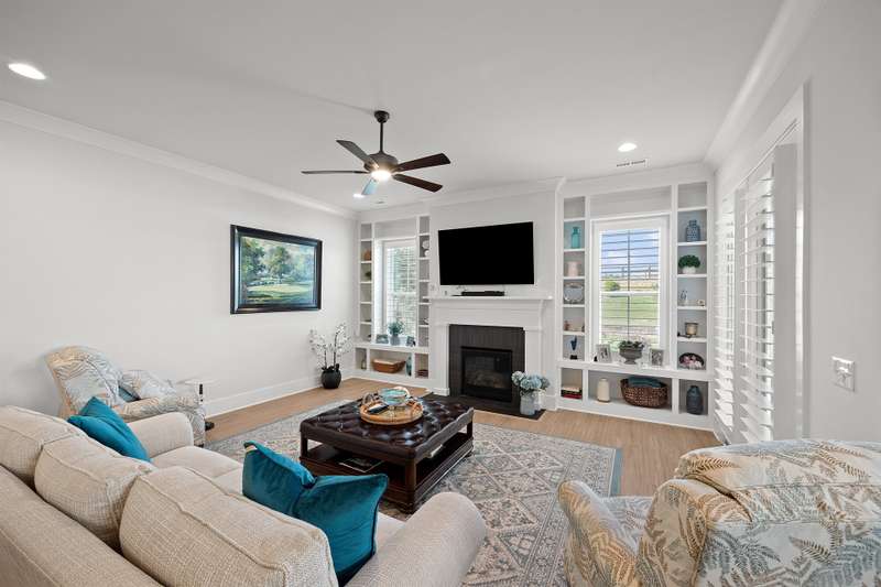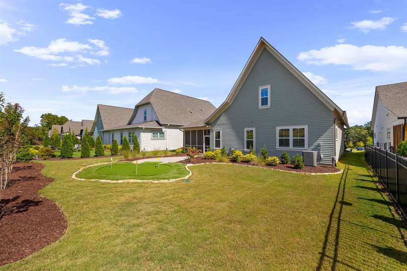 Experience refined living in this elegant, like-new 4-bedroom, 4.5-bath home, offering 3,101 sq. ft. of thoughtfully designed living space. Built with an eye for detail and upgraded features throughout, this residence blends modern sophistication with everyday comfort, creating the perfect retreat for discerning homeowners.From the moment you step inside, you'll be greeted by soaring 10-foot ceilings on the main level, rich wood flooring that flows seamlessly through the downstairs living areas and bedrooms, and custom plantation shutters that add timeless charm. The living room centers around a vented gas log fireplace framed by built-in shelving on either side, while 7-inch crown molding runs throughout the downstairs?including the bedrooms?elevating every space with elegance.The dining room sets the stage for memorable gatherings, featuring 5-foot wainscoting and refined detailing. The oversized laundry room is both practical and stylish, complete with granite counters, a deep sink, cabinetry, and generous storage to keep everything organized.At the heart of the home, the chef's kitchen impresses with quartz countertops, an extended herringbone backsplash carried all the way to the ceiling at the custom hood, and a stunning oversized farm sink. Upgraded cabinetry, stacked to the ceiling with crown molding, includes soft-close doors and hardwood drawers, pull-out trays, and full-depth shelving for optimal function. Added LED under-cabinet lighting creates a warm, inviting glow. The kitchen also boasts a walk-in pantry with MDF shelving, an upgraded microwave cabinet above the wall oven, and a large island with seating for four?perfect for casual meals or entertaining.The bathrooms have been equally upgraded with quartz countertops, elegant tile floors, and tile shower surrounds. The primary suite features a curb-less entry shower with a built-in bench, blending accessibility with spa-like design.The oversized garage is a dream, featuring a built-in workbench, abundant storage, and a durable poly-coated floor designed for both form and function.Step outside to your private oasis, where a professionally installed putting green awaits alongside upgraded landscaping and a full irrigation system in both the front and back yards. Relax or entertain on the covered screened porch, designed with a beautiful stone floor, pull-down shades, and a ceiling fan, offering a comfortable place to unwind year-round.Additional features include an inviting floor plan with four spacious bedrooms, each with its own bath for privacy, and a half bath for guests. The home's craftsmanship, attention to detail, and upgrades throughout make it stand apart as a true luxury retreat.Located in a welcoming community that requires only one resident to be 55+ (but not necessarily the buyer), this home provides a wonderful opportunity to enjoy a low-maintenance lifestyle without sacrificing comfort or elegance.Blending timeless design with thoughtful upgrades and modern conveniences, this residence is more than a home?it's a statement of style and sophistication.
