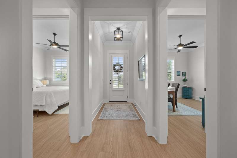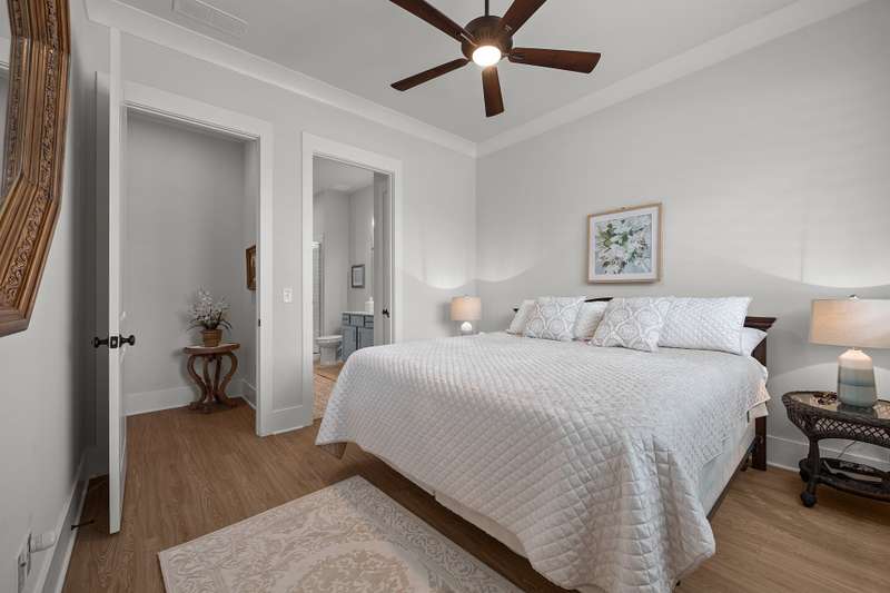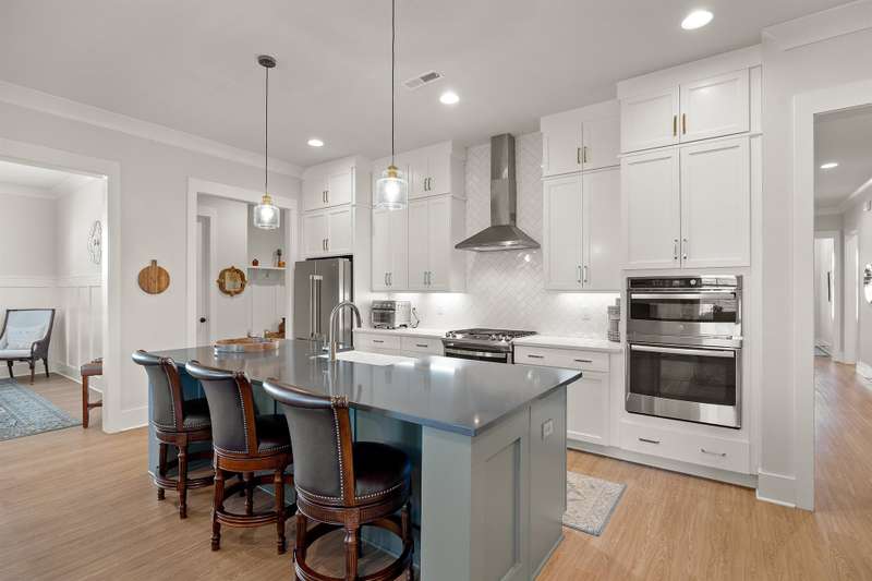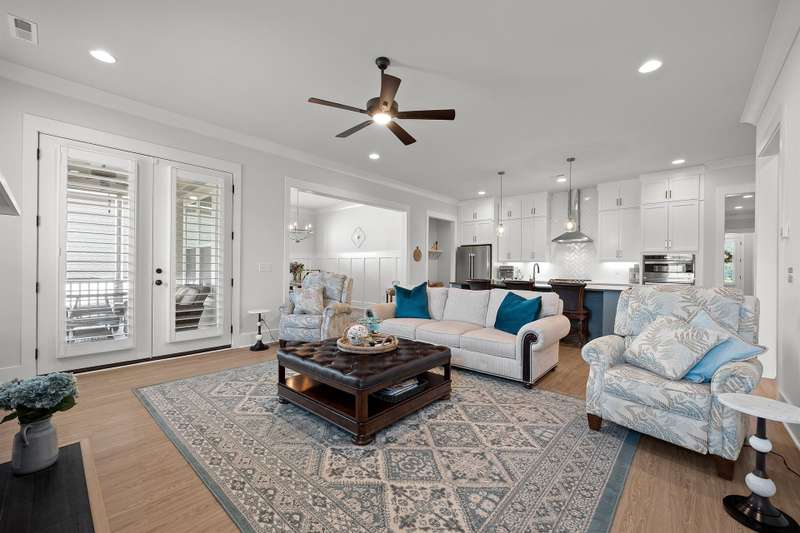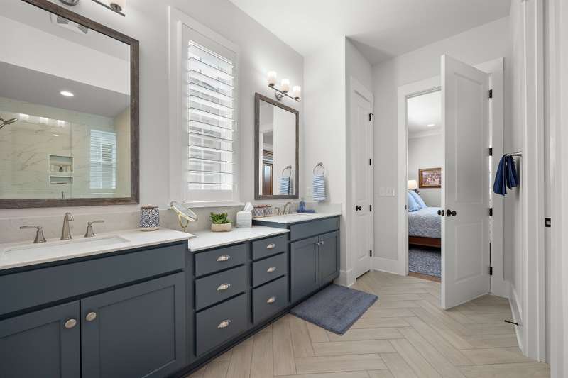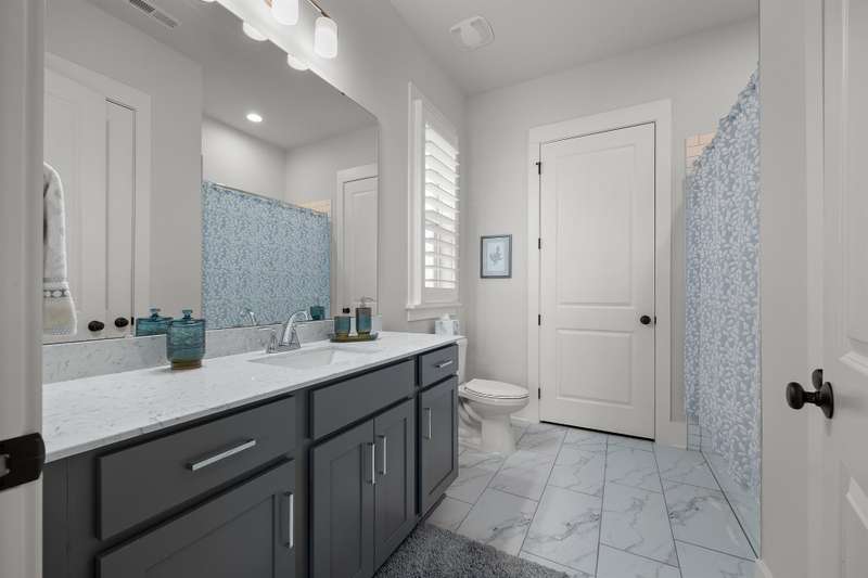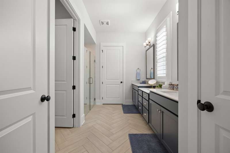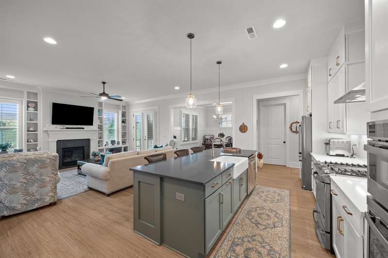 Experience refined living in this elegant, like-new 4-bedroom, 4.5-bath home, offering 3,101 sq. ft. of thoughtfully designed living space. Built with an eye for detail and upgraded features throughout, this residence blends modern sophistication with everyday comfort, creating the perfect retreat for discerning homeowners.From the moment you step inside, you'll be greeted by soaring 10-foot ceilings on the main level, rich wood flooring that flows seamlessly through the downstairs living areas and bedrooms, and custom plantation shutters that add timeless charm. The living room centers around a vented gas log fireplace framed by built-in shelving on either side, while 7-inch crown molding runs throughout the downstairs?including the bedrooms?elevating every space with elegance.The dining room sets the stage for memorable gatherings, featuring 5-foot wainscoting and refined detailing. The oversized laundry room is both practical and stylish, complete with granite counters, a deep sink, cabinetry, and generous storage to keep everything organized.At the heart of the home, the chef's kitchen impresses with quartz countertops, an extended herringbone backsplash carried all the way to the ceiling at the custom hood, and a stunning oversized farm sink. Upgraded cabinetry, stacked to the ceiling with crown molding, includes soft-close doors and hardwood drawers, pull-out trays, and full-depth shelving for optimal function. Added LED under-cabinet lighting creates a warm, inviting glow. The kitchen also boasts a walk-in pantry with MDF shelving, an upgraded microwave cabinet above the wall oven, and a large island with seating for four?perfect for casual meals or entertaining.The bathrooms have been equally upgraded with quartz countertops, elegant tile floors, and tile shower surrounds. The primary suite features a curb-less entry shower with a built-in bench, blending accessibility with spa-like design.The oversized garage is a dream, featuring a built-in workbench, abundant storage, and a durable poly-coated floor designed for both form and function.Step outside to your private oasis, where a professionally installed putting green awaits alongside upgraded landscaping and a full irrigation system in both the front and back yards. Relax or entertain on the covered screened porch, designed with a beautiful stone floor, pull-down shades, and a ceiling fan, offering a comfortable place to unwind year-round.Additional features include an inviting floor plan with four spacious bedrooms, each with its own bath for privacy, and a half bath for guests. The home's craftsmanship, attention to detail, and upgrades throughout make it stand apart as a true luxury retreat.Located in a welcoming community that requires only one resident to be 55+ (but not necessarily the buyer), this home provides a wonderful opportunity to enjoy a low-maintenance lifestyle without sacrificing comfort or elegance.Blending timeless design with thoughtful upgrades and modern conveniences, this residence is more than a home?it's a statement of style and sophistication.