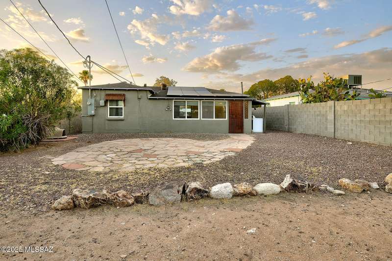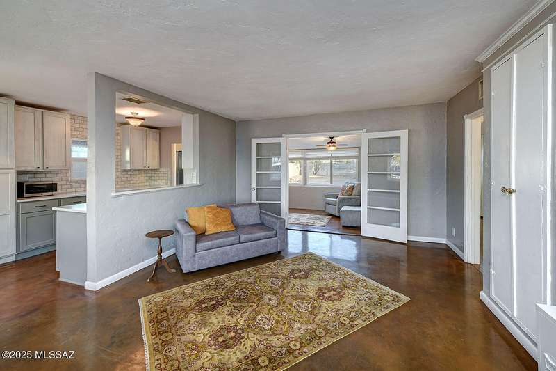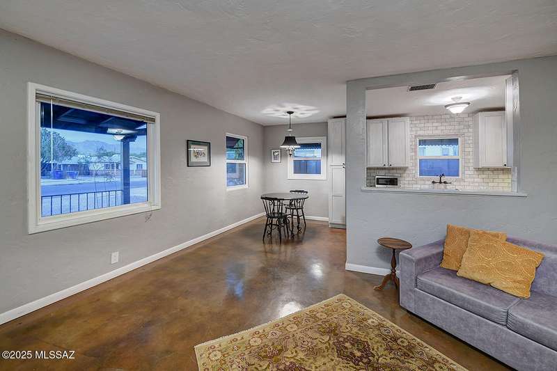 Desirable New Deal Acres within the Blenman Elm Historic District, this charming 2-bedroom, 1-bathroom home has been thoughtfully updated by its dedicated owner of over two decades. This 1,038 square foot home features a newer roof, updated HVAC system, solar energy, and dual-pane windows and provides enhanced comfort and efficiency. Colored concrete floors run throughout, complementing a beautifully appointed kitchen with subway tile backsplash, stone countertops, stainless steel appliances, and an open layout that connects effortlessly to the eat-in area, living room, and a cozy Arizona Room.The two bedrooms are comfortably sized and served by an updated bathroom. The expansive backyard offers endless potential, with plenty of space to create your own outdoor oasis or add a guest