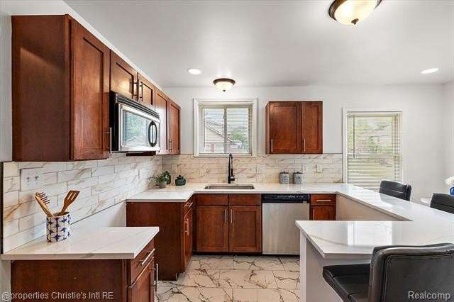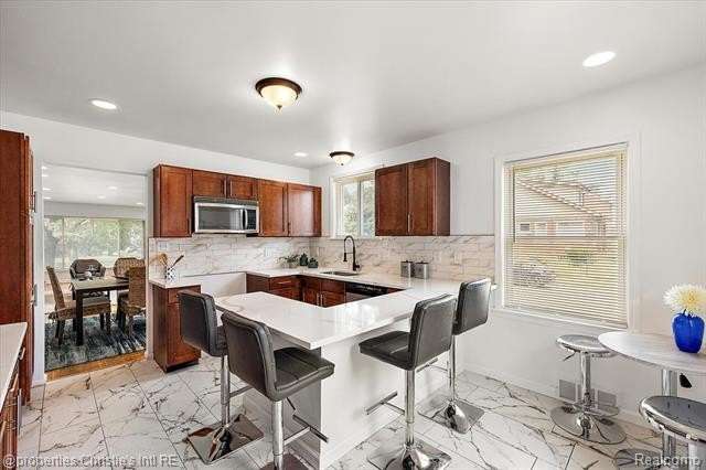 Nestled at 14056 St. Marys in the heart of Detroit, MI, this exceptional home stands out from the rest with its unique blend of luxury and practicality. Boasting a rare 3-car attached garage, you’ll stay dry and comfortable no matter the weather—no trudging through snow or rain. The home features three spacious bedrooms, each designed for comfort, alongside 2.5 beautifully appointed bathrooms. The principal suite, located upstairs, is a true retreat, complete with its own cozy fireplace and a lavish full bathroom featuring a relaxing jacuzzi tub. The newly renovated chef’s kitchen is a showstopper, equipped with an eat-in island, stunning Venetta Calacatta flooring, sleek quartz countertops, and a sophisticated marble backsplash. Throughout the home, gleaming hardwood floors and newer vinyl windows enhance both style and energy efficiency. The fully finished basement adds incredible versatility, offering a half bath and multiple additional rooms that can serve as extra bedrooms, a home office, or a playroom, making this home as functional as it is elegant. Don’t miss the chance to own a property that redefines Detroit living with its thoughtful design and modern upgrades.