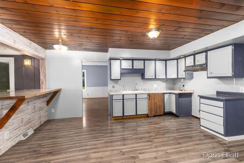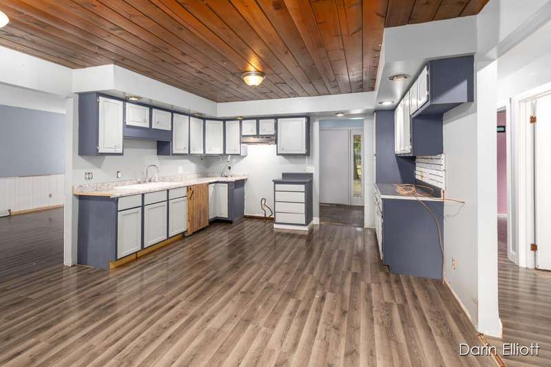 Step into the possibilities of this charming Mid-Century Modern 4 bedroom, 2-bath home nestled on a spacious corner lot in a quiet neighborhood. The main floor features a convenient primary suite. The bonus/4th bed offers extra flexibility perfect for a home office, playroom, or guest space. Enjoy the character of cedar plank ceilings, modern shiplap accents, and newer flooring and windows throughout. The heart of the home is a large open kitchen and dining area, complete with a breakfast bar ideal for casual meals or entertaining. A spacious living room bathed in natural light makes this home feel welcoming and airy. Outside, you'll find a wood-fenced backyard shaded by mature trees perfect for relaxing or hosting. 1+ stall attached garage and an oversized 2-stall complete the estate! While this home does need a bit of TLC, it's packed with character and potential for equity-building updates. A rare find with modern touches and classic charm don't miss your chance to make it your own!