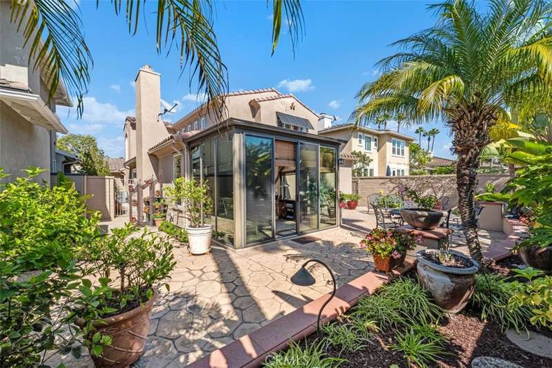 This exceptional home captures the essence of coastal California living. Ocean breezes drift through the neighborhood daily while you enjoy the privacy and security of this exclusive community. The inviting courtyard entrance hints at what's inside. Step through the front door and the home opens up dramatically.The dual-sided stone fireplace anchors the spacious living room, perfect for both everyday living and special occasions. The main floor hosts a luxurious primary suite with a spa-like bathroom. The remodeled bathroom features his-and-hers vanities, jetted tub, an expansive walk-in shower finished in travertine, and walk-in closet. Down the hall, a bright office with direct patio access makes working from home a pleasure--or convert it back into a bedroom if you need the space. Head upstairs to discover a 2nd bedroom + a flex room that could serve as bedroom number 4, and a full bath appointed with granite counters, travertine tile, and shower The kitchen is a chef's delight, completely reimagined with granite surfaces, custom cabinetry, and stainless appliances. It flows naturally into the dining area and glass-enclosed sunroom--a favorite spot flooded with natural light where morning coffee tastes better and dinner parties linger late. Outside, the backyard delivers on California's indoor-outdoor promise. Professionally designed hardscaping and smart, low-maintenance landscaping create the perfect setting for gatherings. Those refreshing ocean breezes a daily reminder of why Huntington Beach living is so special.