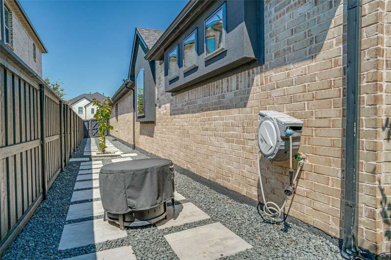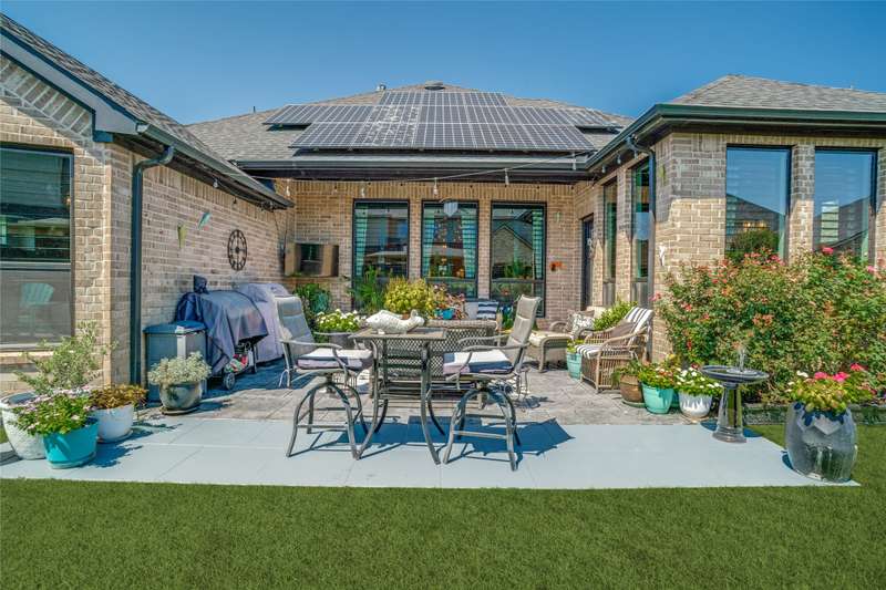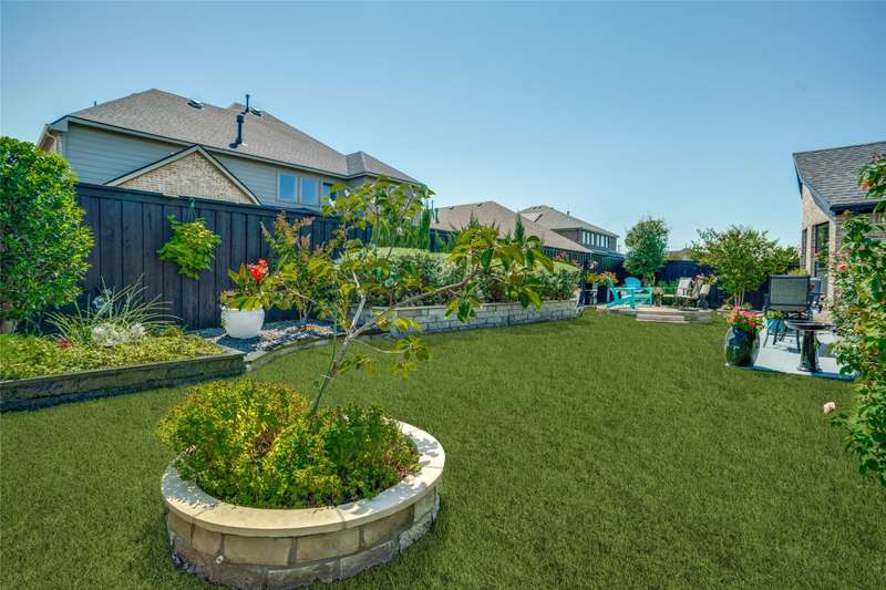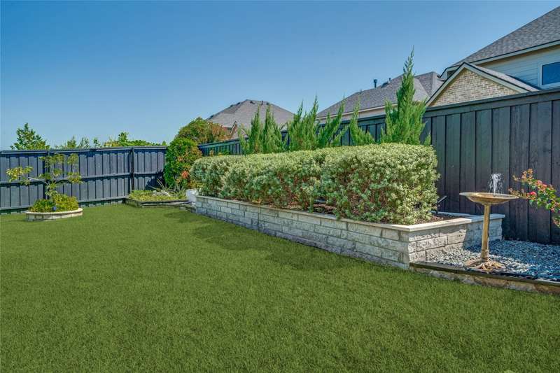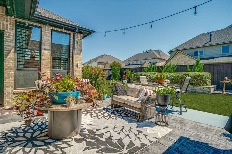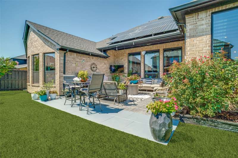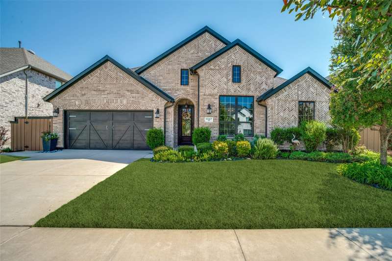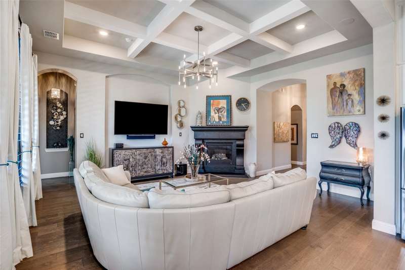 Dare to live your dreams, experience the opulence this elegant one story home offers with modern luxury at every turn. Once inside you will certainly be impressed with the 32 foot long foyer, WD floors, sparkling sconces & view of the beautifully landscaped back yard. A sense of openness draws you into the heart of the home, you are enveloped in a space designed for both relaxation and entertaining. To the right of the foyer, you'll find a private office with French Doors, providing an ideal work-from-home setting. The thoughtful design extends throughout, with two secondary bedrooms located on their own wing each with an ensuite bath for the ultimate privacy and comfort. At the heart of the home, the chef's kitchen stands out with a large center island, ceiling-height cabinetry, and floating base cabinets with under-cabinet lighting that adds a sleek touch to the space. A convenient coffee bar & adjacent dining room provide a great space for gathering, while the family room invites relaxation and a cozy feeling with its cast stone fireplace & coffered ceilings. The Primary suite is a perfect serene retreat, featuring a bay window perfect for curling up with your favorite book. The ensuite bath is a true spa experience with a modern free standing tub, separate walk-in shower, dual vanities, and two walk in closets. An oversized window floods the space with natural light, enhancing the peaceful atmosphere. For those who love to unwind in style, the media room is nothing short of spectacular! Adorned with luxurious purple carpet,specialty lighting, and fully wired for sound, this room is ready for the ultimate movie nights.Throughout the home, engineered wood floors provide a seamless flow, while modern black windows paired with 4 inch black shutters against crisp white trim give the entire house a fresh contemporary feel. The back yard is breathtaking, vibrant blooms, a large stamped concrete patio and string send a cool vibe for entertaining!