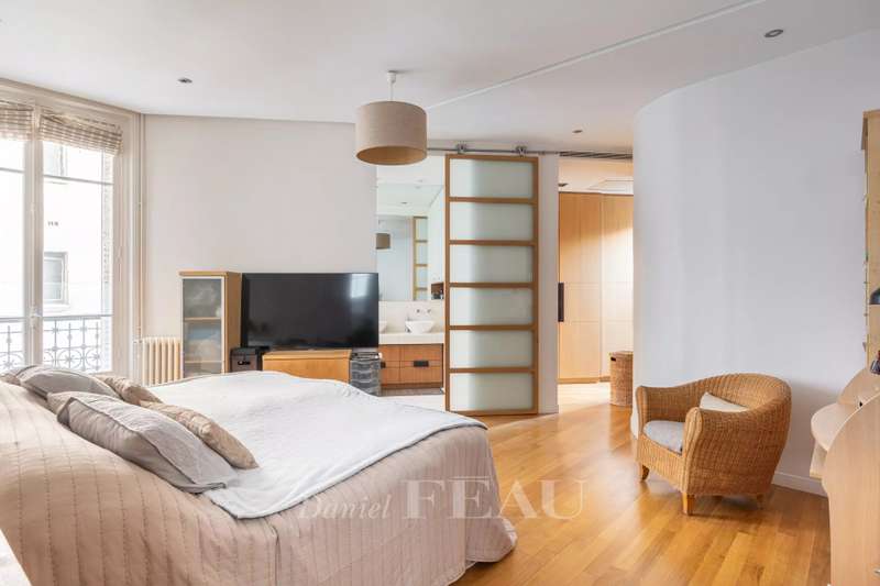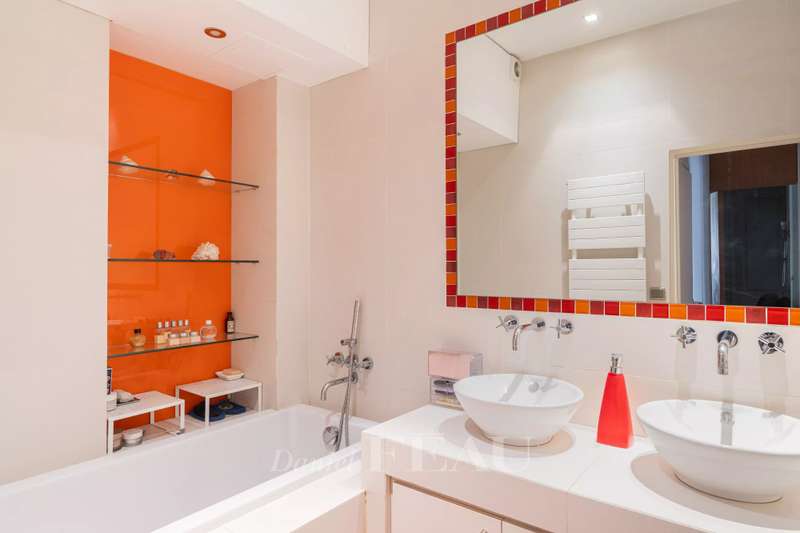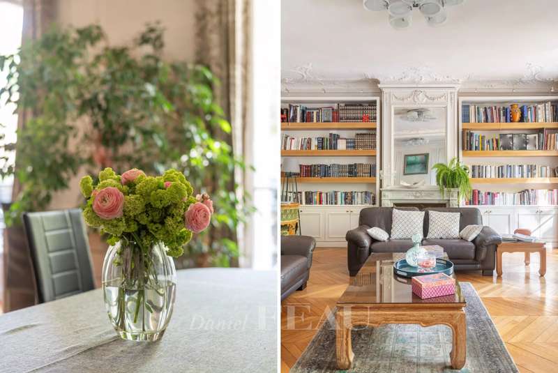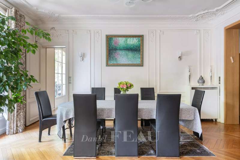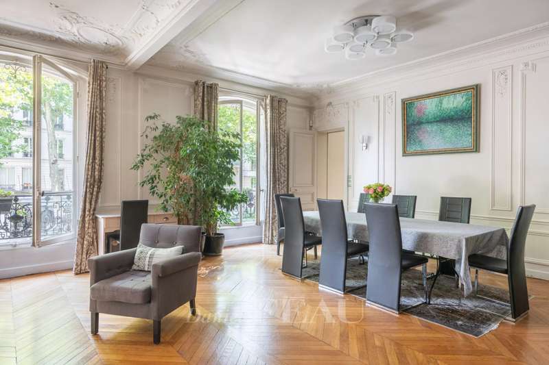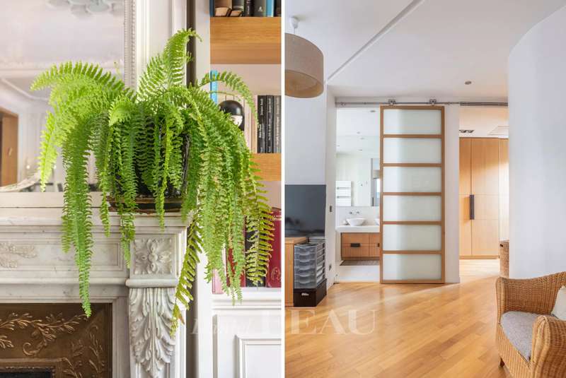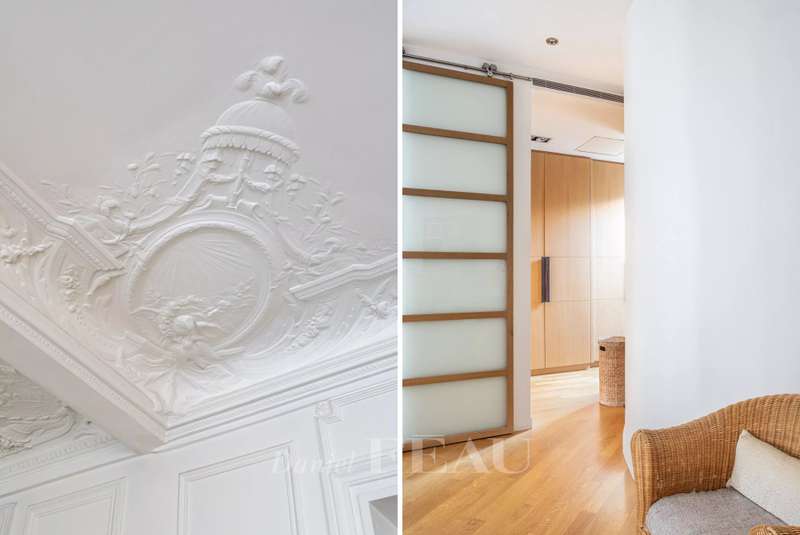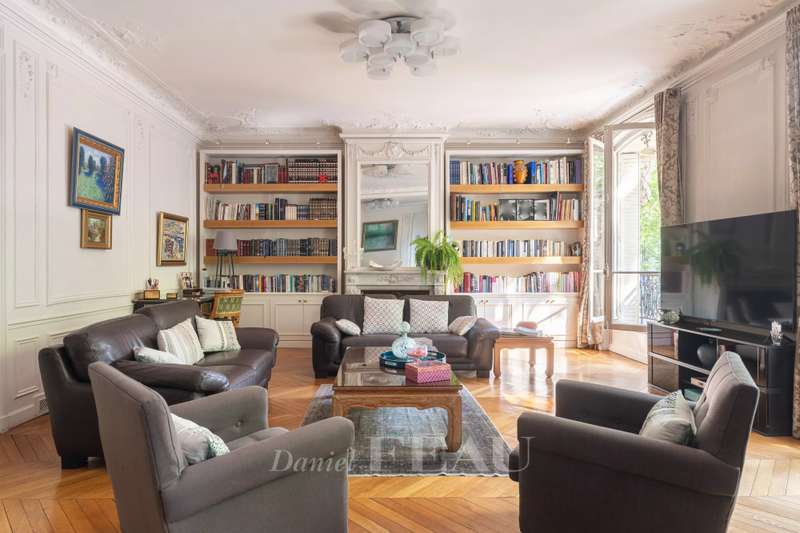 Theatre des Sablons neigbourhood. This south-facing apartment bathed in sunshine and benefiting from an optimised floor plan is on the 1st floor of a fine early 20th century building. Revamped by an internationally-renowned interior decorator, it includes a bright 55 sqm double living/reception room with a fireplace, a kitchen with a central island and dining facilities, an elegant 37 sqm master suite with a bathroom and dressing room, two further bedrooms with a bathroom, a 4th bedroom with a shower room, and a utility room. The bedrooms overlook a peaceful garden, are air conditioned and benefit from fitted storage space. With a basement cellar and a near 7 sqm top-floor maid’s bedroom at extra cost. Pasteur catchment area.