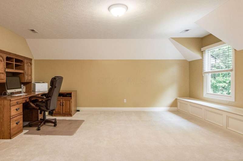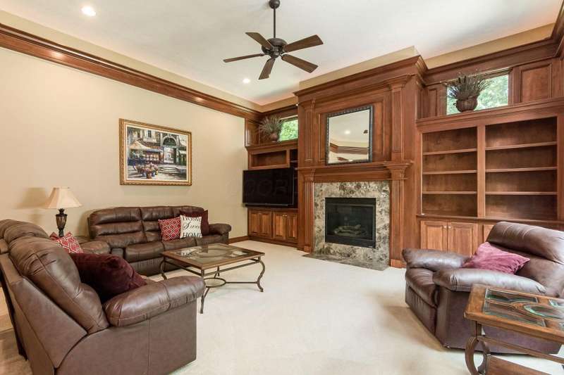 Sprawling Romanelli & Hughes-built home on a private acre-plus lot in the Olentangy School District! Less than 1.5 miles to Downtown Powell, Adventure Park, YMCA and many other conveniences. Access to community trail/bike bath at top of street! Seller offering $10K credit for paint and carpeting. Enjoy soaring ceilings and exquisite millwork throughout that are sure to impress. The oversized kitchen features an expansive center island, double ovens, and a walk-in pantry. It opens to an informal dining area and a generous family room, highlighted by a central fireplace, custom built-in shelving, a recessed ceiling with crown molding, and cove lighting. The entry level also includes a formal dining room, laundry room, half bath, and a substantial study. The luxurious owner's retreat offers a spacious dressing/sitting area, a spa-inspired bath, and a walk-in closet. Upstairs you'll find three additional guest rooms-one with an ensuite bath-and all with custom walk-in closets. The finished lower level showcases 9-foot ceilings, a fifth bedroom, a full bath, and a cozy living area with a gas fireplace. The wide lot backing to a wooded area provides tranquility and ample space for outdoor activities. Located near schools, parks, conveniences, and town center-this home is the perfect blend of luxury, privacy and accessibility.