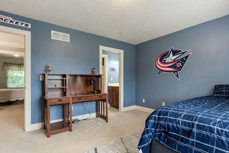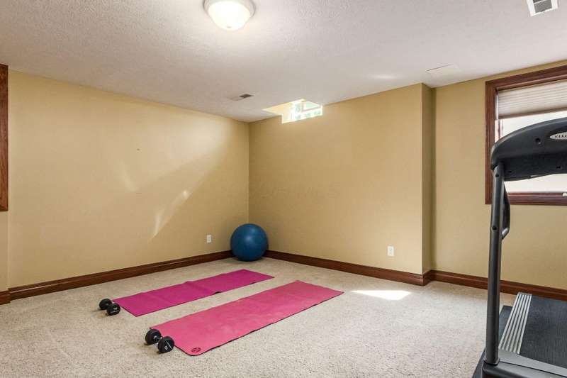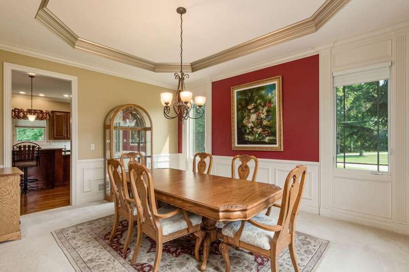Sprawling Romanelli & Hughes-built home on a private acre-plus lot in the Olentangy School District! Less than 1.5 miles to Downtown Powell, Adventure Park, YMCA and many other conveniences. Access to community trail/bike bath at top of street! Seller offering $10K credit for paint and carpeting. Enjoy soaring ceilings and exquisite millwork throughout that are sure to impress. The oversized kitchen features an expansive center island, double ovens, and a walk-in pantry. It opens to an informal dining area and a generous family room, highlighted by a central fireplace, custom built-in shelving, a recessed ceiling with crown molding, and cove lighting. The entry level also includes a formal dining room, laundry room, half bath, and a substantial study. The luxurious owner's retreat offers a spacious dressing/sitting area, a spa-inspired bath, and a walk-in closet. Upstairs you'll find three additional guest rooms—one with an ensuite bath—and all with custom walk-in closets. The finished lower level showcases 9-foot ceilings, a fifth bedroom, a full bath, and a cozy living area with a gas fireplace. The wide lot backing to a wooded area provides tranquility and ample space for outdoor activities. Located near schools, parks, conveniences, and town center—this home is the perfect blend of luxury, privacy and accessibility.