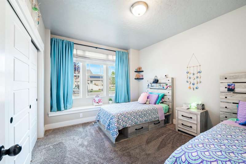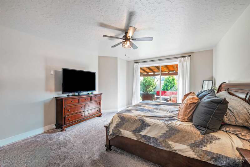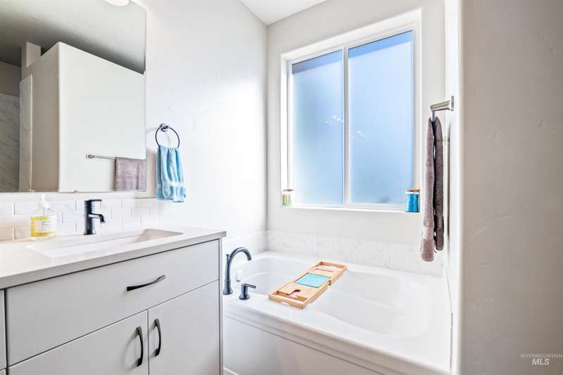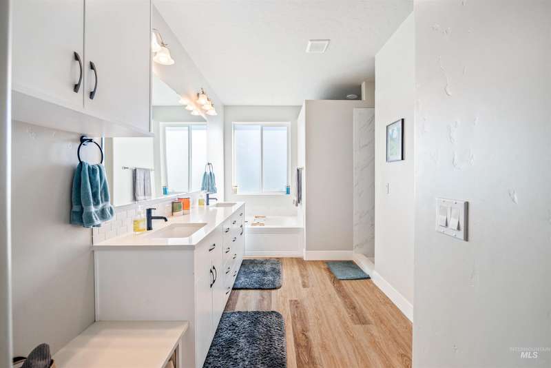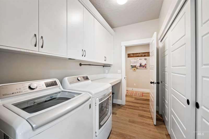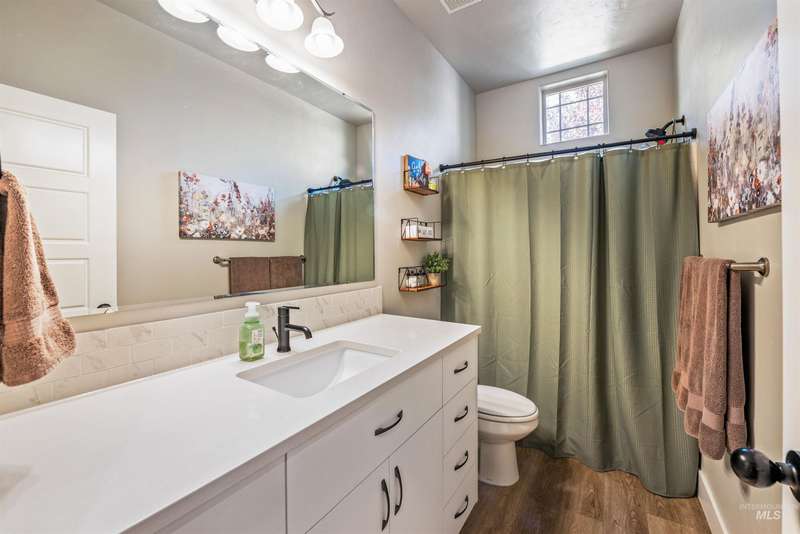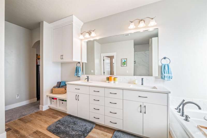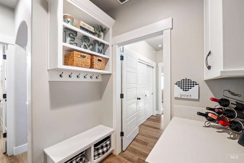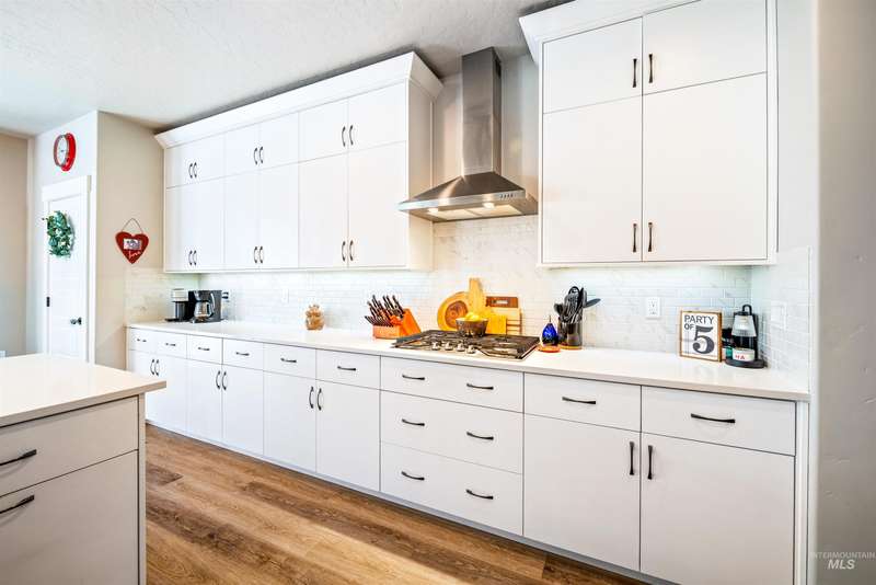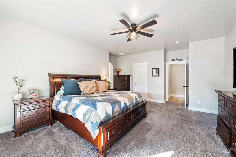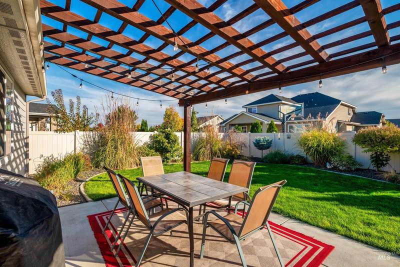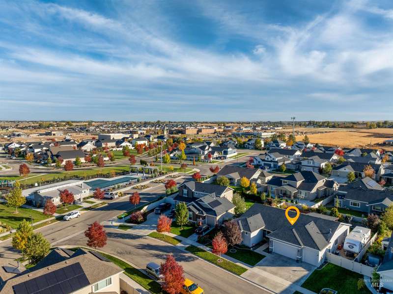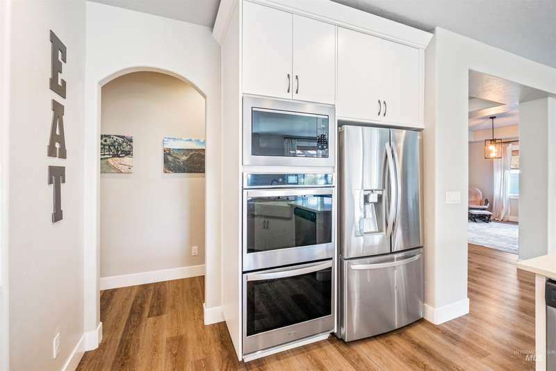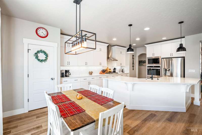 Stunning Single-Level Home with Modern Comforts and Timeless Style - Discover this beautifully designed single-level home offering a split-bedroom floor plan and an inviting open concept layout perfect for both everyday living and entertaining. The spacious great room features a cozy gas fireplace, seamlessly connecting to the gourmet kitchen with quartz countertops, farm sink, stainless steel appliances, double ovens, gas cooktop, and a large pantry—a chef’s dream! This home includes four bedrooms, with one featuring a convenient Murphy bed, plus a dedicated office and a formal dining room. The primary suite is a true retreat with two walk-in closets, dual quartz-topped vanities, a tiled walk-in shower, soaker tub, and private access to the covered patio. Enjoy indoor-outdoor living with a covered porch, expansive patio, and a fully fenced backyard—perfect for gatherings or quiet evenings. Additional highlights include RV parking, LVP flooring throughout, and access to a community pool and park. Conveniently located close to shopping, dining, and amenities, this home combines luxury, comfort, and functionality in one perfect package.