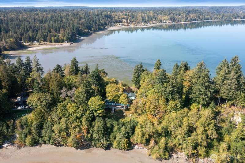 Rare opportunity to own on ultra-private South Head Peninsula, where homes seldom come to market. Boasting over 500 feet of waterfront on both sides, this property offers unmatched seclusion and is surrounded by pristine old-growth forest. The light-filled, east-facing home showcases breathtaking sunrises with sweeping views of Mt. Rainier and the Puget Sound. Inside, the open floor plan feels airy and inviting, with a spacious primary suite awaiting your vision and a generous guest suite with attached full bath. Step out to the expansive sundeck, complete with an outdoor shower, or follow landscaped paths that lead directly to your own private beach. A rare legacy property combining total privacy, natural beauty, and timeless tranquility.