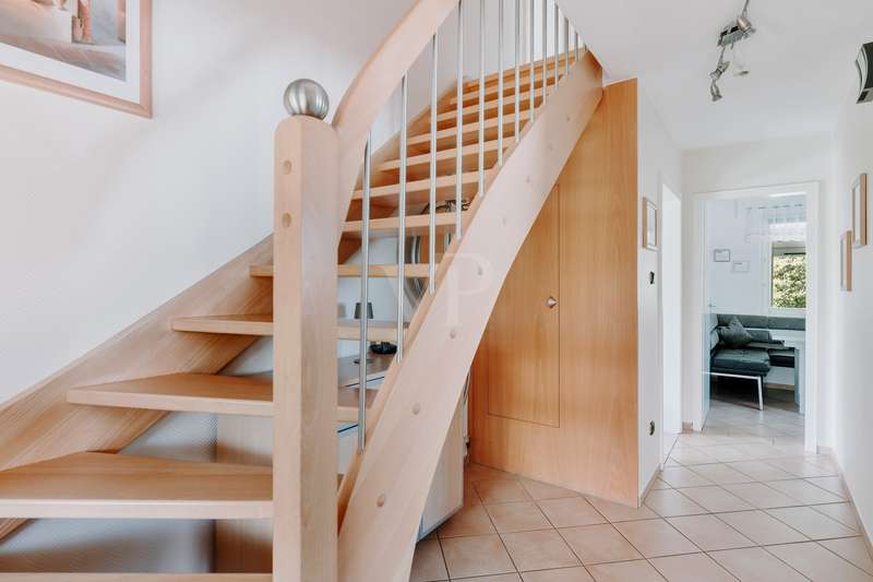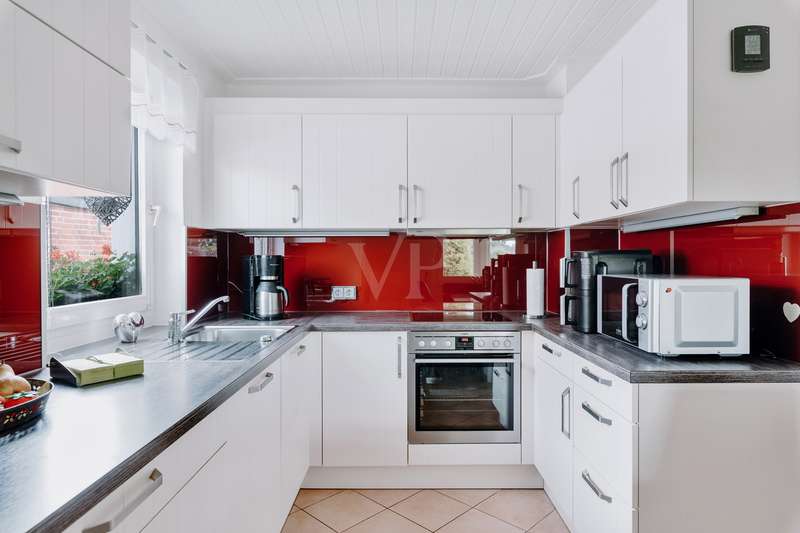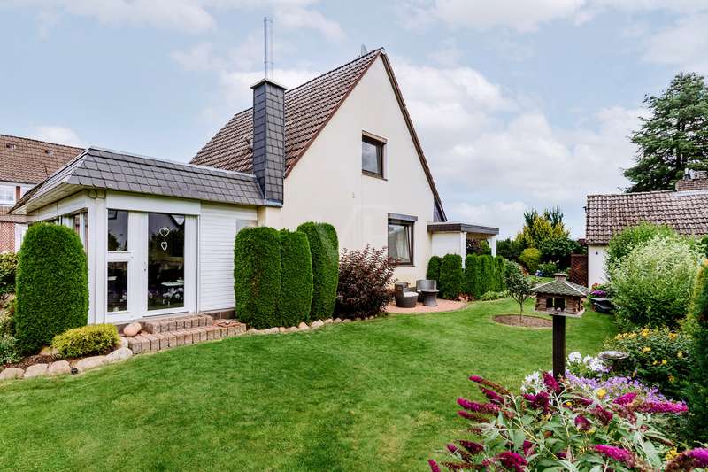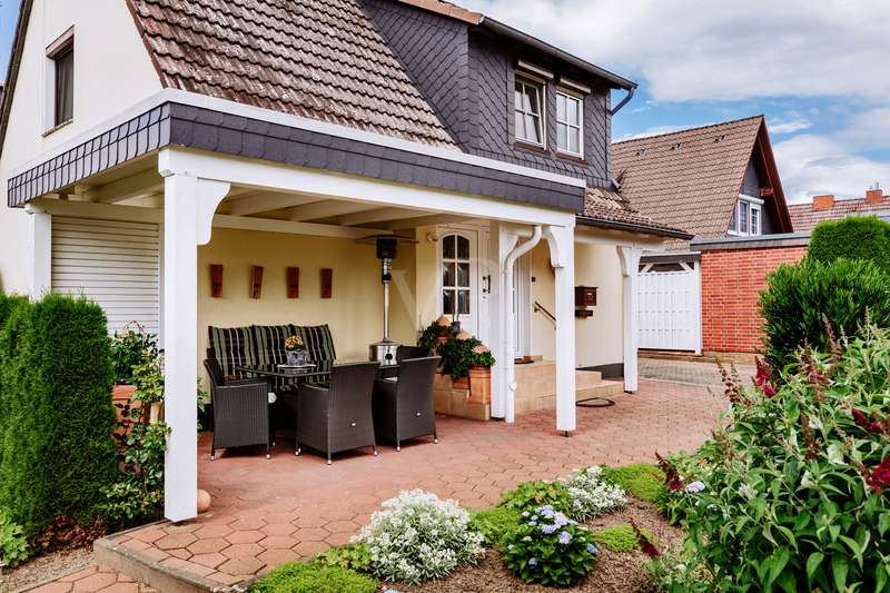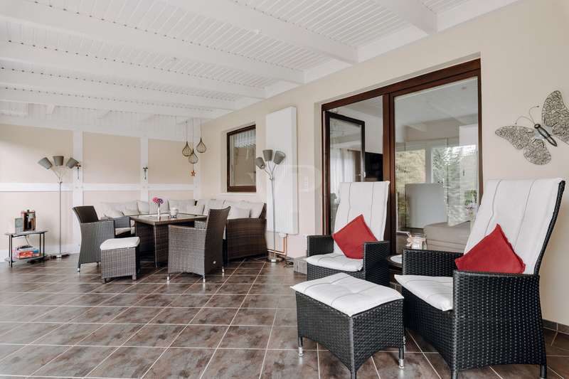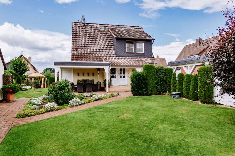 This lovingly maintained detached house from 1964 impresses with its solid character and cozy living ambience. On approx. 77 m² of living space, spread over 2 floors, you can expect four well-designed rooms that offer a variety of uses. A particular highlight is the spacious 23 m² conservatory, which extends the living space and is a place of peace and relaxation at any time of year. The modern, renovated shower room blends stylishly into the well-kept overall condition of the property. The beautifully landscaped garden with automatic irrigation system invites you to relax and enjoy. A carport and a practical outbuilding round off the offer. Whether as a cosy home for the family or as a retreat for couples - living with a feel-good factor can be realized here.