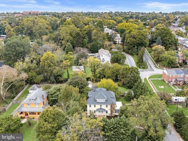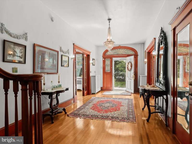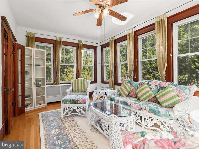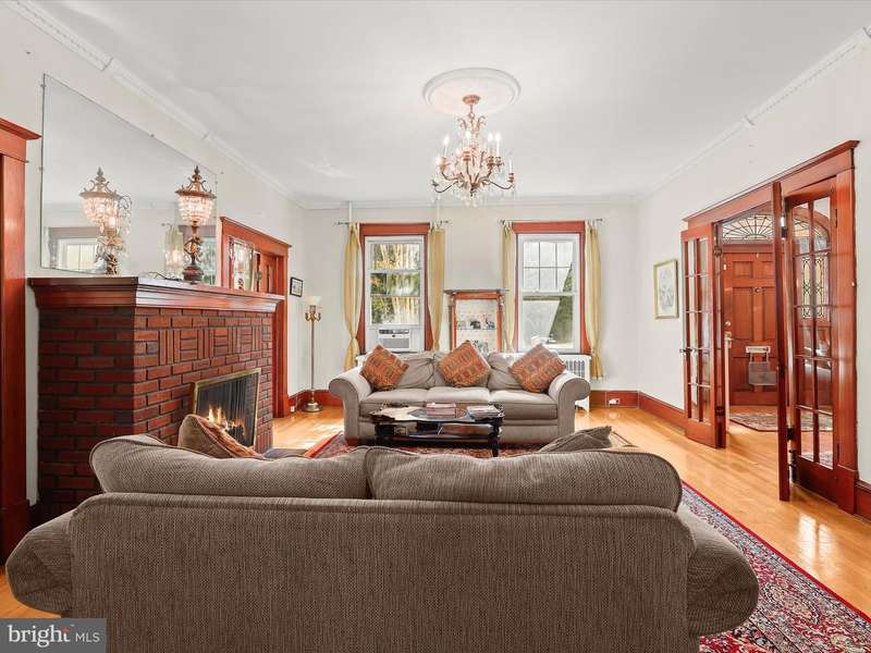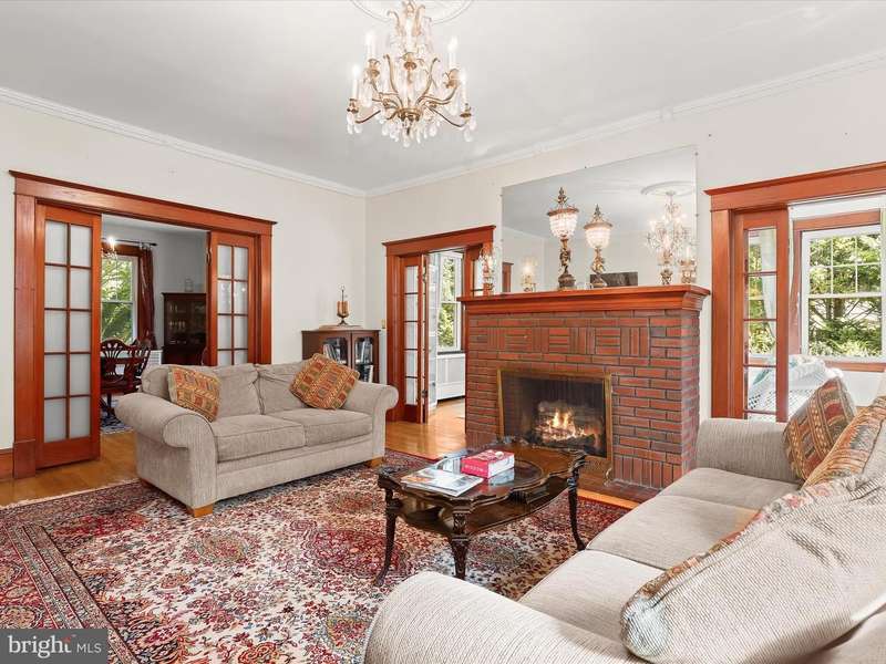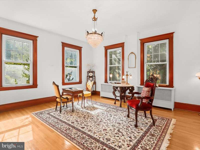 Welcome to 6100 Frederick Road, a truly exceptional and historic residence in the heart of Catonsville. Offering six bedrooms, three full and one half baths, this timeless home showcases exquisite original details including hardwood floors, stained glass accents, wood moldings, and soaring ceilings that evoke the elegance of a bygone era. A once-in-a-lifetime opportunity, this prestigious property has been lovingly cared for by only four owners in its 98-year history. A gracious center hall foyer welcomes you inside, where to the left lies a formal sitting room with a stunning marble decorative fireplace, and to the right, a formal living room with a brick fireplace that flows into the sunroom and dining room, each accented with French doors and hardwood floors. The beautifully updated kitchen features crisp white soft-close cabinetry, quartz countertops, stainless steel appliances, a walk-in pantry, and a mudroom with side entry. A library, which could serve as a seventh bedroom, and a powder room complete the main level. The upper level follows a traditional four-square design, offering four spacious bedrooms with hardwood floors, walk-in closets, and two Jack-and-Jill baths. This level also includes an office space. The top floor includes two additional bedrooms, a third full bath, and multiple versatile spaces ideal for storage, a home office, or creative retreat. Set on a private, tree-lined half-acre lot, the property features a two-car detached garage with extended storage, a charming gazebo and patio, a storage shed, and exterior motion-sensor lighting. Recent updates include a new roof, replaced main sewer line, new gutters, exterior paint, a new boiler, and an expanded garage. With a zoning variance allowing use as a Bed and Breakfast or office space this property offers a rare opportunity to own a cherished piece of Catonsville's history lovingly maintained and ready to welcome its next chapter.