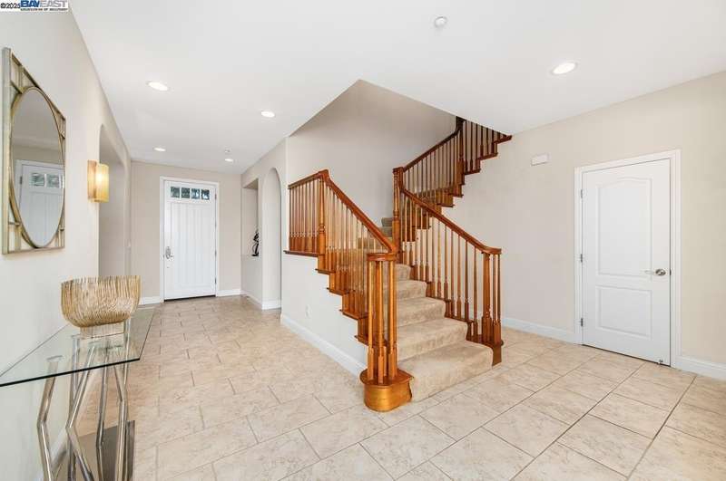 Beautiful 4 bedroom, 4.5 bath, 2 story, 3 car garage, approx. 3,770 sqft, majestically sitting on approximately an 18,000 sqft lot and on an elevated corner lot with no side neighbors, One full bedroom & bath on the first level, panoramic views of greenbelt/park, formal living room w/fireplace, formal dining room w/tile flooring and crown molding, recessed lighting, built-in speakers, crown molding and 14 x 24 inch travertine tile flooring throughout the house, beautiful gourmet eat-in kitchen with island and breakfast bar, ample cabinets for storage, granite counter tops & tile back splash, stainless steel appliances, Built-in Kitchen Aid refrigerator, 6 burner stainless steel gas cooktop, butler pantry, walking closet, crown molding, recessed lighting, family room with gas fireplace, nook for entertainment center and surround sound, large primary bedroom suite with sitting area, fireplace, walk-in closet, primary bathroom with sunken tub, tile counter tops and stall shower and plantation shutters, each bathroom has its own bathroom, upstairs laundry room, built-in bookshelves. resort like backyard, pool/spa & patio with stone decking. Close to wineries, parks, shopping, restaurants, schools, Sandia and Lawrence Livermore Labs, ACE train, Lake Del Valle & downtown Livermore!
