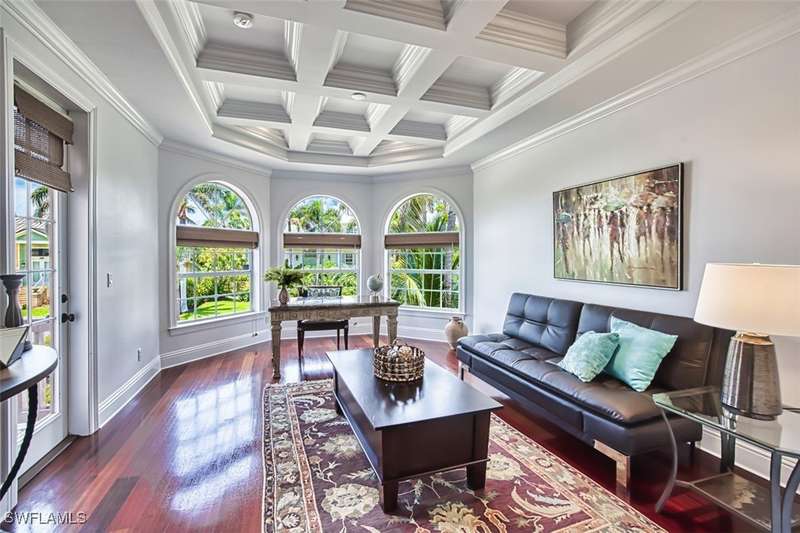 Sanibel's Ultimate Luxury Retreat Welcome to your dream island escape on prestigious Eagle Run Drive, where luxury, location, and lifestyle meet. This extraordinary residence offers prime convenience with seamless on-and-off island access, walkable proximity to Sanibel's beloved restaurants, and just a short stroll to your private deeded beach access. Set amidst lush tropical landscaping and overlooking the peaceful Sanibel River and verdant golf course, this home exudes serenity and sophistication. Designed and built by the esteemed Wolter Group, every detail speaks of quality, from the soaring volume tray ceilings to the refined custom finishes throughout. The heart of the home is the gourmet chef's kitchen, featuring a Wolf induction cooktop with integrated downdraft, a six-burner French La Cornue gas stove, hand-crafted copper hood, rich wood cabinetry, and gleaming granite countertops. This space is as functional as it is breathtaking. The elegant floorplan offers three spacious en-suite bedrooms, a formal living and dining room, and a private office with separate entrance-ideal for working from home. The primary suite is a private sanctuary with expansive river views and direct access to the oversized upper-level terrace, complete with an electric grill-perfect for stylish entertaining or peaceful morning coffee. Step outside to your own private resort: a resort-style pool and spa surrounded by a large screened lanai, offering the ultimate in outdoor living. Additional features include a four-car garage with newly finished epoxy floors and ample storage throughout. Whether savoring sunset skies, entertaining guests, or taking a peaceful walk to dinner, this home offers the very best of Sanibel living. Schedule your private tour today and experience timeless island elegance.