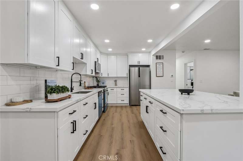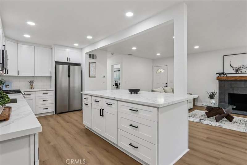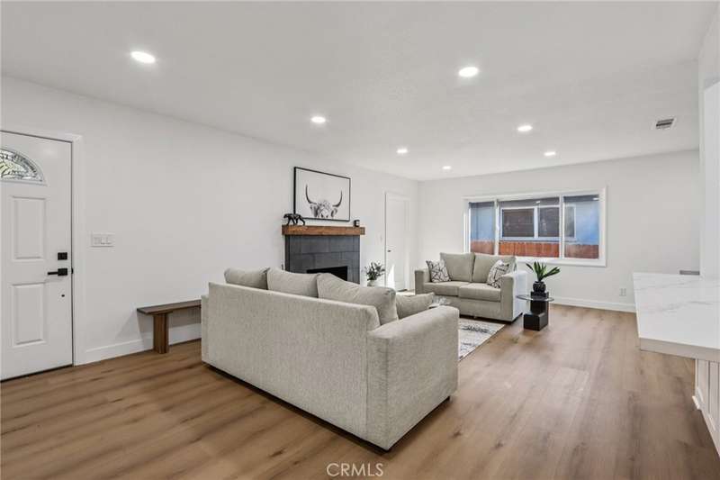 Beautifully Remodeled Single-Level Home! Step inside this completely renovated residence featuring fresh interior and exterior paint, new vinyl wood flooring throughout, and an inviting open-concept layout. The upgraded kitchen showcases crisp white cabinetry, quartz countertops, a large center island, and stainless steel appliances--perfect for entertaining. The home offers both a spacious living room and a cozy family room, each with its own stunning fireplace. The primary suite includes a remodeled ensuite bathroom, while three additional bedrooms are served by two beautifully updated bathrooms. Enjoy outdoor living in the expansive backyard with a concrete patio and lush lawn area. Additional highlights include a two-car attached garage and a convenient location close to parks, schools, shopping, and major commuter routes.