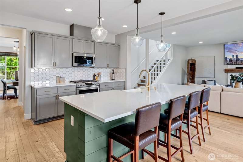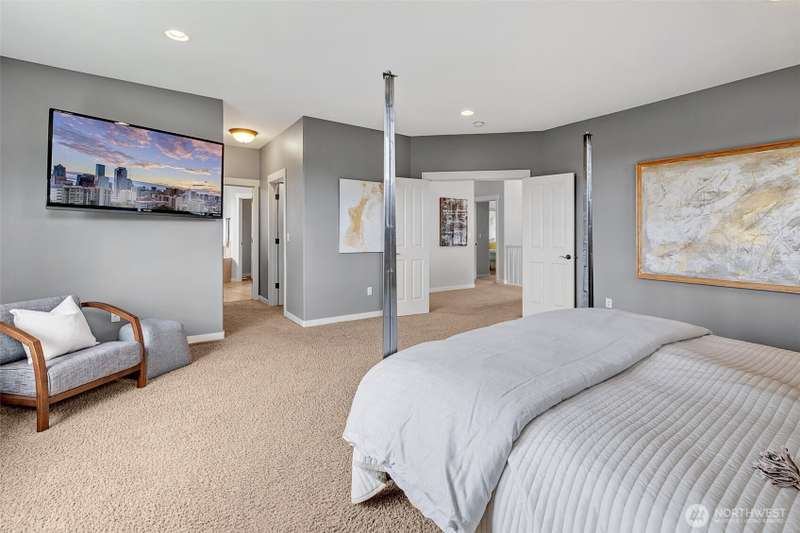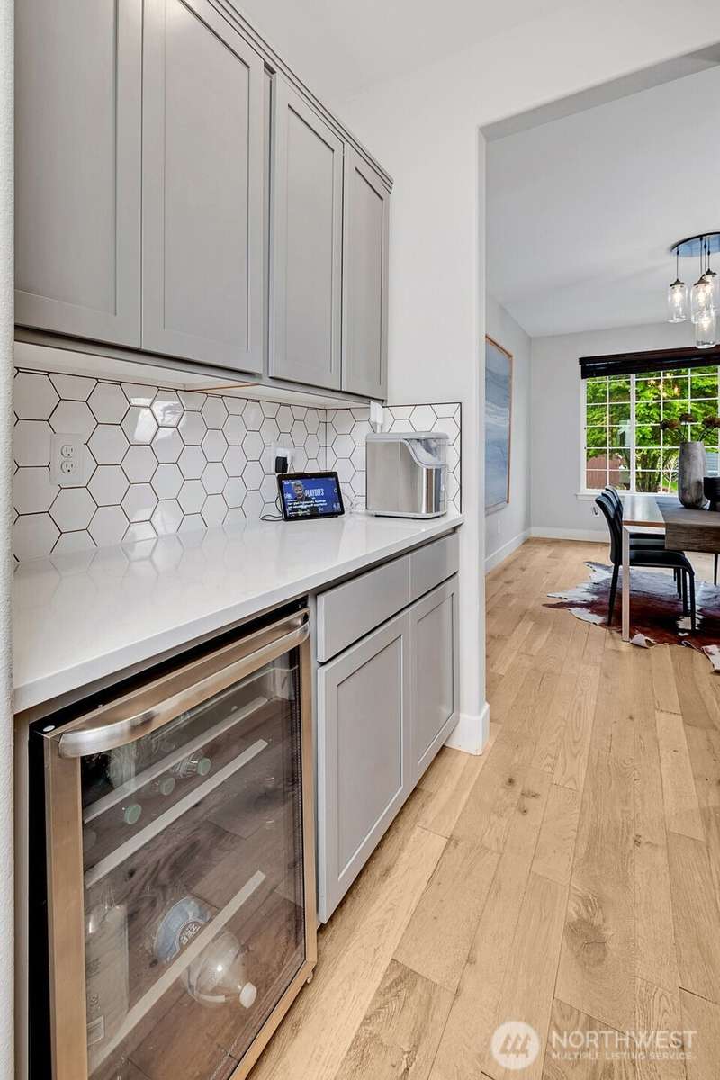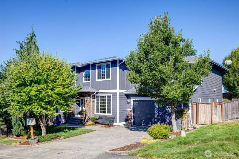 Gorgeous custom home in the Panorama West Community of Bonney Lake. This quality-built home offers 3,332 sq ft of living space - 5 bedrooms, 2.5 bathrooms and a main floor office. Spacious floor plan boasts hardwood floors, vaulted ceilings, gas fireplace, ample storage, and plenty of natural light. The island kitchen features quartz countertops, high end appliances and a butler’s pantry with a wine fridge. Primary bedroom with an ensuite bathroom and walk-in closet. Fully fenced private lot with mature landscaping, heated covered patio and a built-in outdoor kitchen that is perfect for year-round entertaining. Plus, there is a 4-car tandem garage, hot tub, shed, wired for a generator and endless views. This home is a must see!