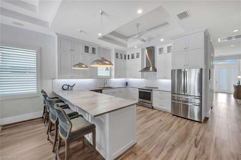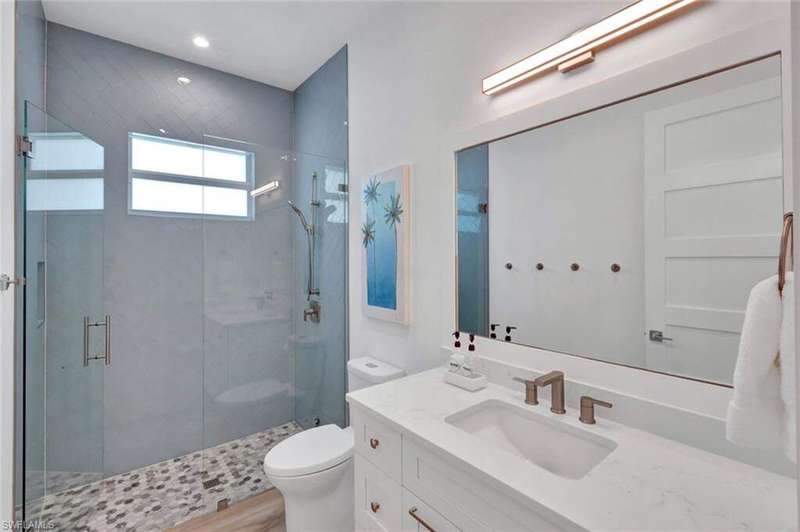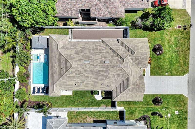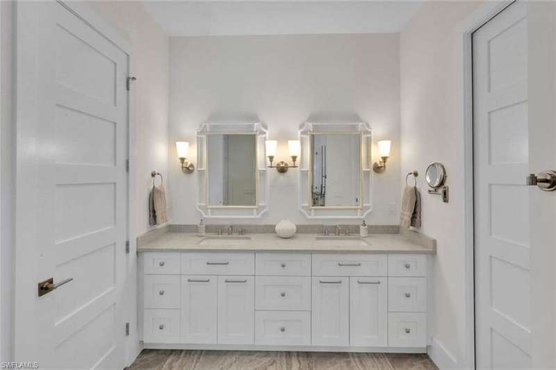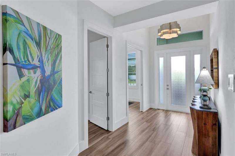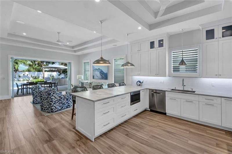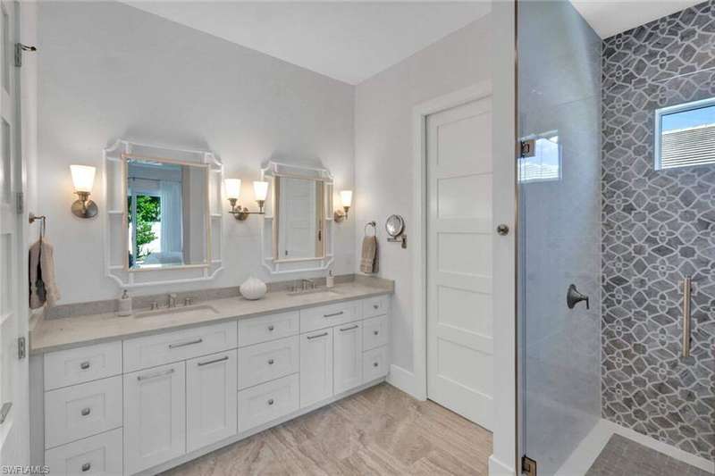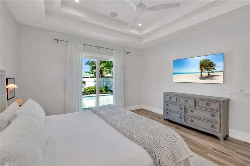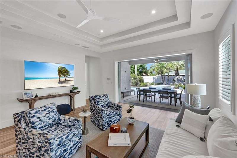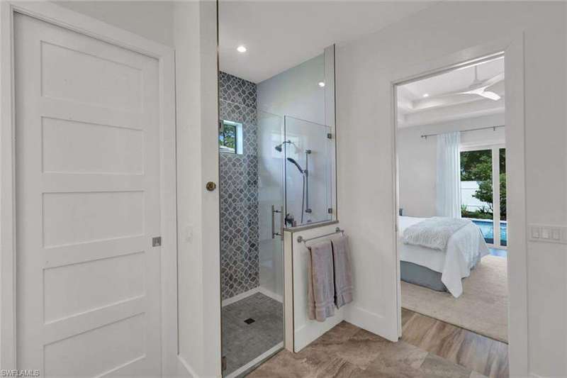 Coastal Elegance Meets Effortless Naples Living. Welcome to your coastal dream home, a spectacular newer construction offering 3 bedrooms plus a den, 4 full baths on an expansive lot and a half that provides space and privacy. Thoughtfully designed and masterfully crafted, every detail of this residence reflects the essence of refined yet relaxed Naples living. Step inside and immediately feel the sense of scale and sophistication. Ten-foot ceilings throughout are elevated by 11.5-foot double tray ceilings in the foyer, den, kitchen, great room, and primary suite. Wide-plank porcelain tile flooring through out, plantation shutters, and hurricane-impact windows and doors. At the heart of the home, the light-filled gourmet kitchen shines with white shaker cabinetry, honed Dolomite countertops, including an induction cooktop, convection oven, and microwave drawer. A custom double-door pantry offers abundant storage, while the built-in wine cooler and Sonos sound system make entertaining a pleasure. The smart home wiring allows you to control lighting, sound, and systems with a simple tap on your phone. Each bedroom retreat provides comfort and privacy, complete with California Closets and beautifully finished bathrooms. The primary suite features expansive vanity, a spacious walk-in shower, and sliding glass doors that open directly to the lanai. Step outside to your private garden oasis, where a sparkling saltwater pool are surrounded by lush tropical landscaping. Enjoy alfresco dining at the outdoor kitchen with gas BBQ, unwind in the outdoor pool shower, or host friendly games of bocce. Lanai is protected by electric roll down shutters for convenience and comfort. Additional highlights include a 2.5 car climate controlled garage for the car enthusiasts or hobbyist and a whole house generator powered by a 500 gallon buried gas tank, ensuring seamless living year round. Ideally located just minutes from Vanderbilt Beach and Mercato's premier shopping, dining, and entertainment, this home captures the best of Naples coastal luxury, stylish, smart, and ready to enjoy!
