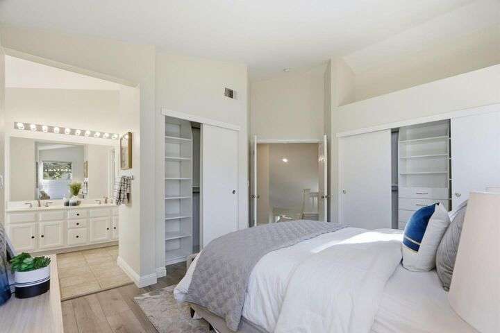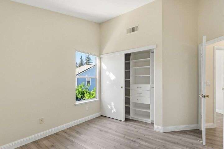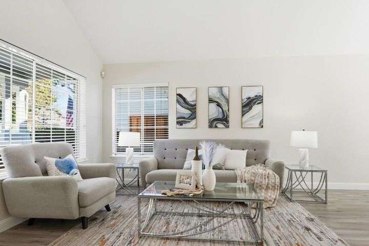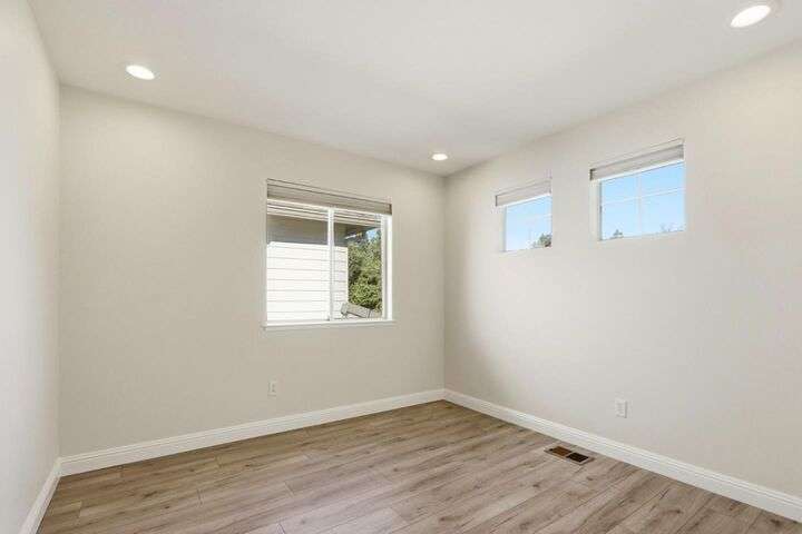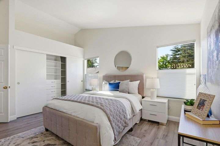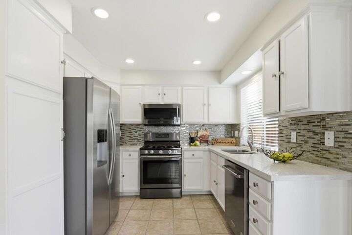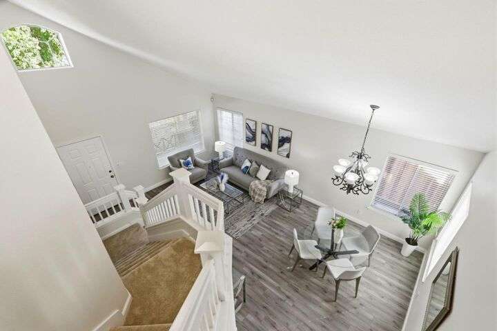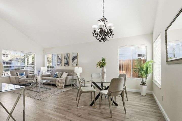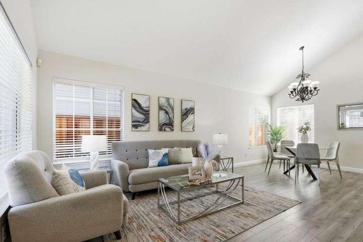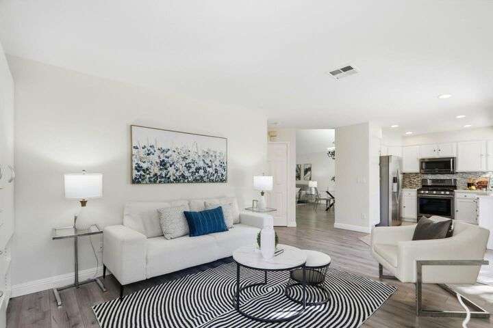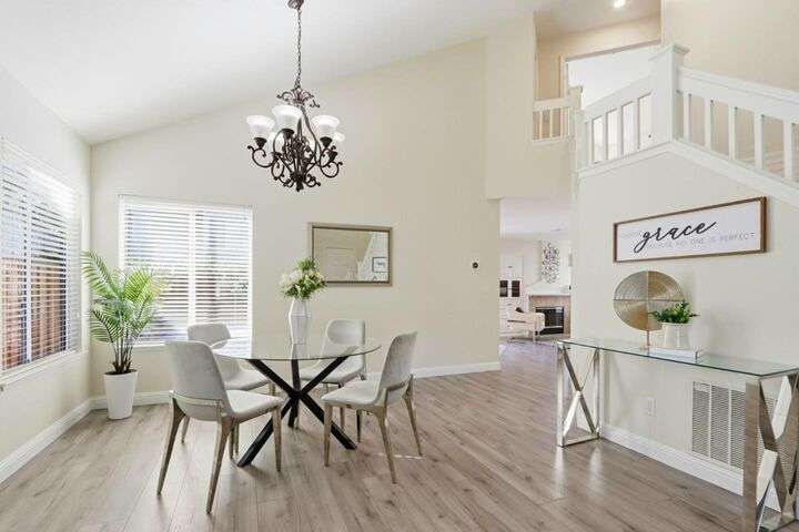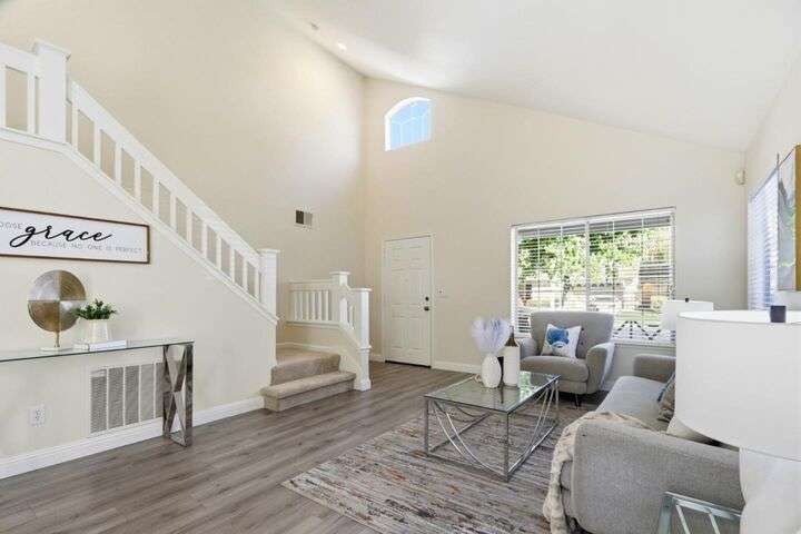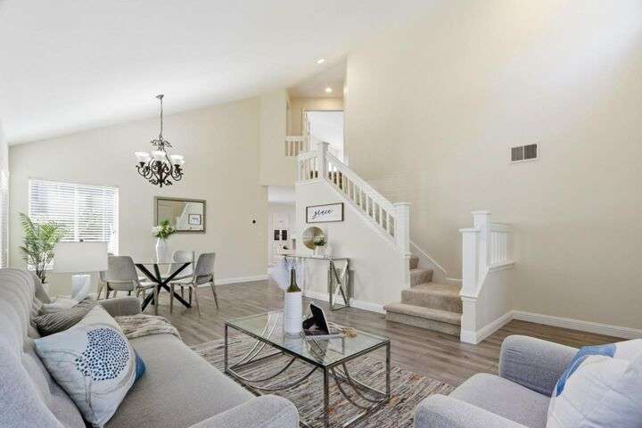 Welcome to your dream home in the desirable California Grove neighborhood of Santa Teresa! This beautifully updated 4-bedroom, 2.5-bathroom residence offers 1,680 Sq. Ft. of modern living with fresh interior and exterior paint and soaring vaulted ceilings that create a bright, open feel. The stylish kitchen features stainless steel appliances, granite countertops, and a custom backsplash, while laminate flooring, new carpet on the stairs, and recessed lighting add warmth and elegance. Enjoy a cozy family room with a fireplace and sliding doors that open to a private backyard with a newer fence ideal for entertaining or relaxing. The primary suite boasts vaulted ceilings and a spa-like bath, while three additional bedrooms offer flexibility for guests, family, or a home office. Additional features include central heating and A/C with a newer HVAC system, Solar system, a newer water heater, a water purifier, and a fully finished oversized garage. Perfectly located near Oakridge Mall, Village Oaks Shopping Center, parks, major commute routes (85, 87, 101), VTA, Kaiser, IBM, and top Silicon Valley tech campuses, with no HOA fees, this home combines comfort, style, and convenience.
