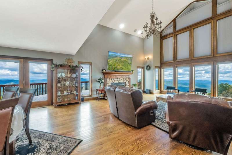 WOW! This is the mountain property everyone dreams about but rarely finds — 15 private acres, gated entry, and a tree-lined paved driveway that winds upward with just the right amount of anticipation. As you round the final curve, the reveal will stop you in your tracks: breathtaking, endless views that feel like your own private slice of the Blue Ridge. This modern 3-bedroom, 2.5-bath mountain retreat has been lightly lived in and impeccably maintained, featuring fresh exterior/interior paint, a new roof installed in 2021, and a new gas water heater. It is move-in ready, waiting for its next chapter. Whether you're seeking a full-time sanctuary, a second home escape, or an unforgettable vacation rental with the biggest views around, this one delivers. Experience Main Level Magic. Step into a wall of windows framing 180° vistas — sunrise coffee and sunset cocktails will never be the same. The great room centers around a sleek gas fireplace and opens to an upscale kitchen featuring premium appliances, abundant cabinetry, and ample space for holiday gatherings or impromptu dinner parties. The primary suite is a true retreat. Massive windows wake you to those same killer views, while the spa-worthy bath features a soaking tub, walk-in shower, double vanities, and dual closets. Enjoy Upstairs and Downstairs Flexibility. The upper level offers a spacious bedroom or office, plus a large walk-in closet. The lower level adds a third bedroom, a shared bathroom, and two bonus rooms, perfect for a theater, hobby space, or gym. Enjoy garage goals and room to expand with an attached two-car garage, keeping your vehicles and toys protected. An additional detached garage is ideal for UTVs, gear, or a future workshop. With 15 acres, there's potential to subdivide. Imagine a family compound or expanding your vacation rental portfolio. Experience a prime location, tucked away yet just minutes to West Jefferson for shopping, dining, breweries, and small-town charm, quick access to the New River, Blue Ridge Parkway, and only 30 minutes to Boone. Two adjoining lots are also available for even more acreage or future build sites. This is not just a house, it's a statement property. The kind of rare mountain retreat that stirs something inside you. Once you see the view, you'll never want to leave. Call today for your private viewing of our listing P141.