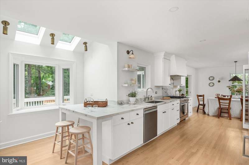 Welcome to Peltrie Places newest offering in Bethesda a beautifully reimagined and thoughtfully renovated 6-bedroom, 4.5-bathroom Cape Cod that blends timeless architectural character with modern finishes throughout. In conjunction with renowned Claude C. Lapp Architects, LLC, Laurel Oaks floorplan was redesigned to create a thoughtful ease of flow for everyday living. Sited on a 1/2-acre lot in Burning Tree Manor, a stately circular driveway framed by a beautifully landscaped front yard sets the tone for the elegance within. The gracious skylit foyer flows into the sundrenched living room that features an oversized bay window, multiple seating areas, and a striking gas fireplace with marble details as the centerpiece. This space is seamlessly connected to the dining room, ideal for both intimate dinners and lavish gatherings. Adjacent is the luxurious gourmet chefs eat-in kitchen featuring designer selected cabinetry and hardware, imported Italian Porcelain countertops and floating shelves, a luxury appliance suite, a walk-in pantry, and a breakfast area as well as a peninsula with stool seating for three. Just beyond the kitchen is an all-season sunroom boasting floor-to-ceiling windows which fill the back of the home with natural light. The room provides an inviting spot for morning coffee or casual gatherings, while maintaining a flawless connection to the elevated upper terrace that leads down to the large, flat backyard. Also on the entry level is a fifth bedroom (perfect for multi-generational living!), a jack-and-jill bathroom with double vanity, and a versatile home office / sitting room / sixth bedroom. Completing this level is an elegant powder bathroom with a custom marble sink, a charming mudroom with built-in storage, and an additional coat closet. Upstairs, the serene primary suite offers a private foyer entrance, a walk-in and built out closet, as well as three additional built-out closets. The spa-inspired primary bathroom has a large picture window overlooking the backyard, linen storage, two vanities, a deep soaking tub, a separate water closet and a large glass enclosed shower. There are three additional bedrooms on this upper level, a hallway windowed bathroom with a dual vanity and bathtub, a side-by-side LG washer and vented dryer, a linen closet and access to attic / storage space. The walk-out lower level features a spacious recreation room with a wood-burning fireplace and kid's play nook under the stairs, a full bathroom, a home gym / bonus room, a secondary mudroom with additional laundry hookup and storage, an oversized 2-car garage with EV wiring, and generous storage space. A covered terrace connects the lower level to the expansive and grassy backyard perfect for recreation, alfresco dining, lounging, gardening, or gathering around the firepit. The home also includes a generator and an outdoor storage closet. With effortless access to the Beltway and located just a few miles from Downtown Bethesda, Potomac Village, Cabin John Park and many of the area's elite private clubs as well as local neighborhood swimming pools, Laurel Oak offers you the ideal suburban lifestyle. Not to mention the close proximity to multiple school options, and within the sought-after Seven Locks Elementary, Cabin John Middle, and Winston Churchill High School district. As seen in Architectural Digest and Home& Design, Peltrie Place prides itself on designer focused projects with no detail overlooked.