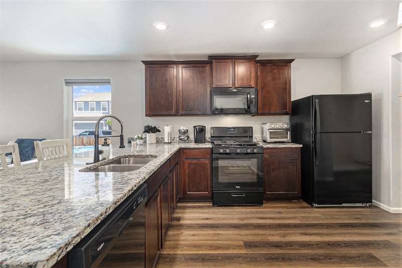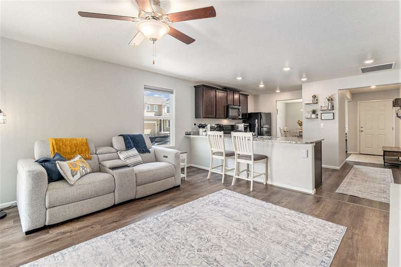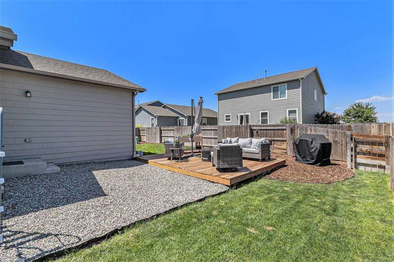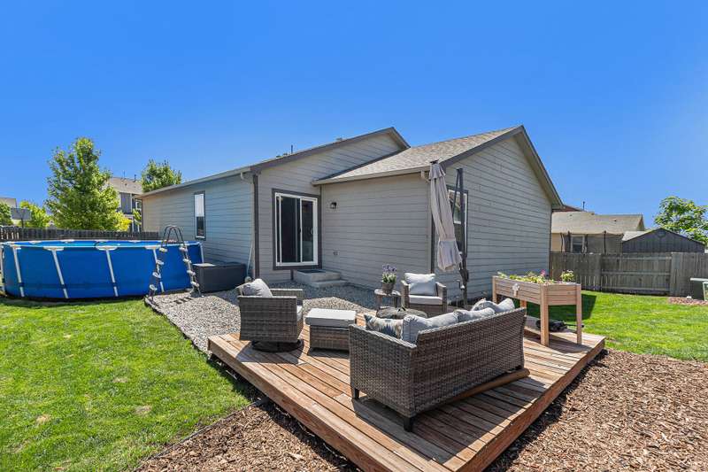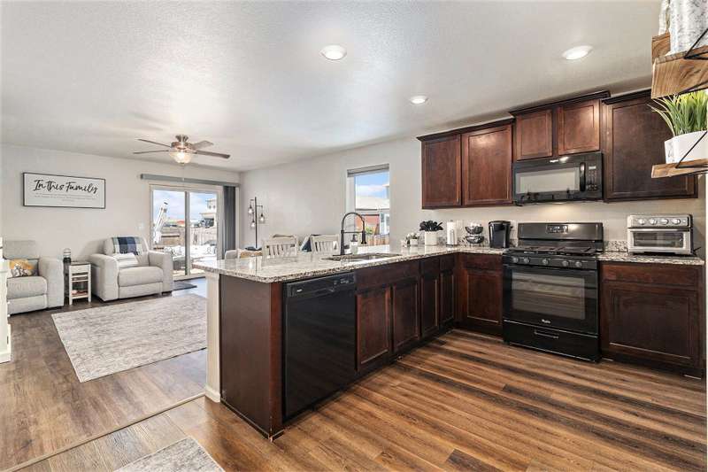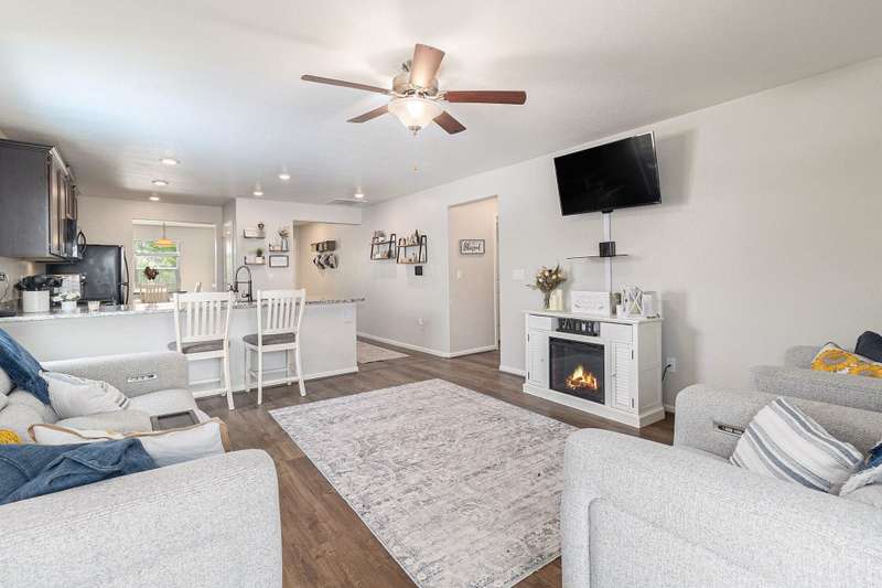 Price Reduced! Beautifully maintained ranch with mountain views! Nestled on a desirable corner lot, this charming 3-bedroom, 2-bath ranch-style home offers a thoughtfully designed layout. Step inside to brand new luxury vinyl plank flooring throughout, creating a fresh and modern feel. The open kitchen features granite countertops with bar stool seating, ample cabinet space, a gas range, and pantry-perfect for cooking and entertaining. A separate dining room and spacious family room flow seamlessly from the kitchen for entertaining and connection. The primary suite includes a walk-in closet and full en-suite bath. Two additional bedrooms and a full bath provide ideal space for family or guests. The mudroom includes washer and dryer hookups and connects directly to the attached 2-car garage. Enjoy the peaceful backyard with a large deck, sprinkler system, and garden-ready space for flowers or vegetables. Energy-efficient solar panels offer utility savings, and a generous crawl space provides extra storage. This well-loved home is move-in ready and waiting for its next owner! Newer AC, 2 car garage, Solar panel lease is $102/mo., above ground swimming pool included if buyer wants it.