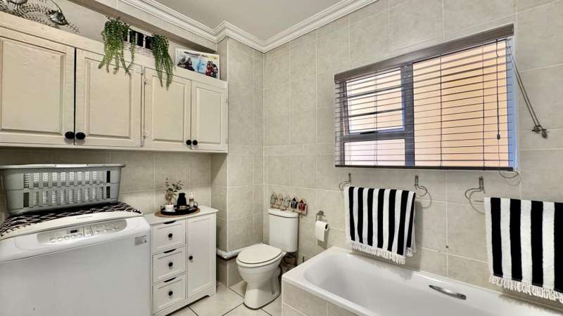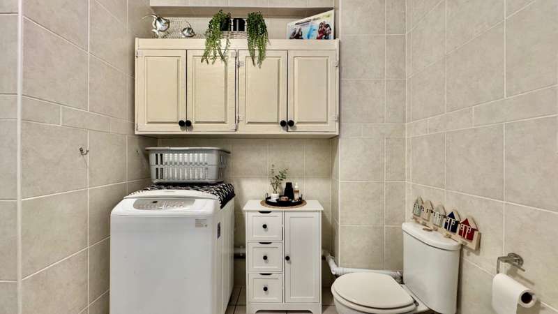 Both bedrooms are well-sized with built-in cupboards and ceiling fans. The main bedroom includes an en-suite bathroom. The second bathroom is positioned for guests or the second bedroom and conveniently plumbed for a washing machine.
