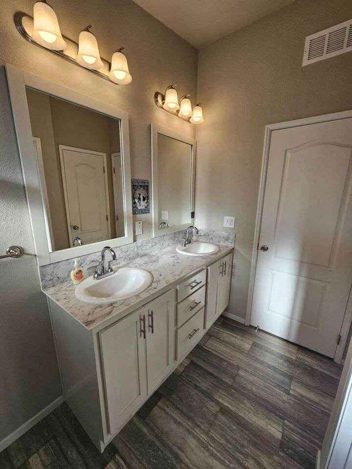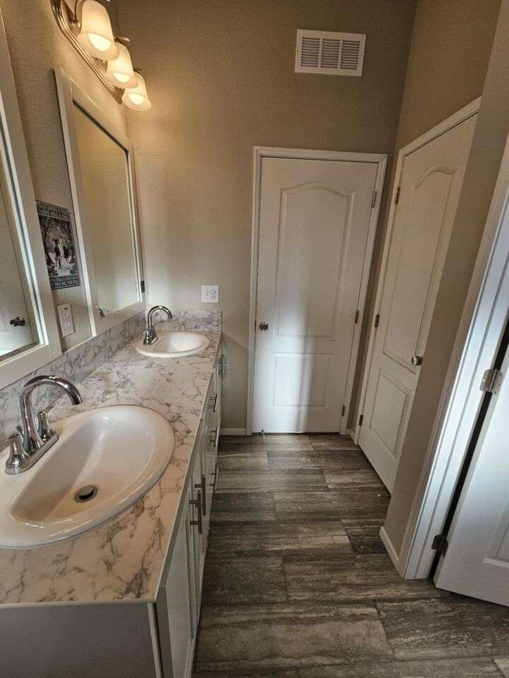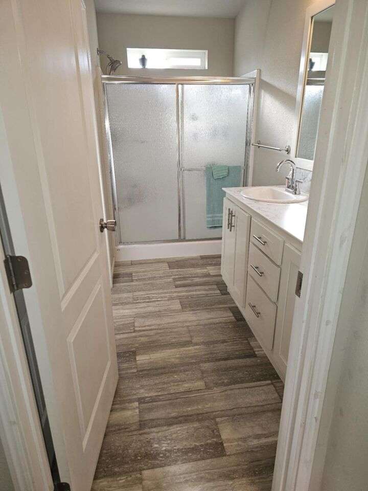 Welcome home to this 2021 built 3 bedroom, 2 bath home in an all age community. Great open floor plan with vaulted ceilings, large living area, and a spacious laundry room. Bedrooms are nice sized with the primary having double vanities. The covered front porch is the perfect place to relax. The amenities provided really make it a great option for families. A private, fenced in park, a large, clean swimming pool and hot tub, and a fantastic gym & family friendly club house. There is an outdoor BBQ and plenty of tables and chairs for summer gatherings. The dog park has obstacles to help keep your furry friend well exercised. The Bear Creek Green Way trail runs behind the community with a locked gate to keep non-residents out, it is perfect for family bike rides and leisurely walks to Lithia Fields or Blue Heron Park. Space rent $943, water, sewer and garbage is billed separately.