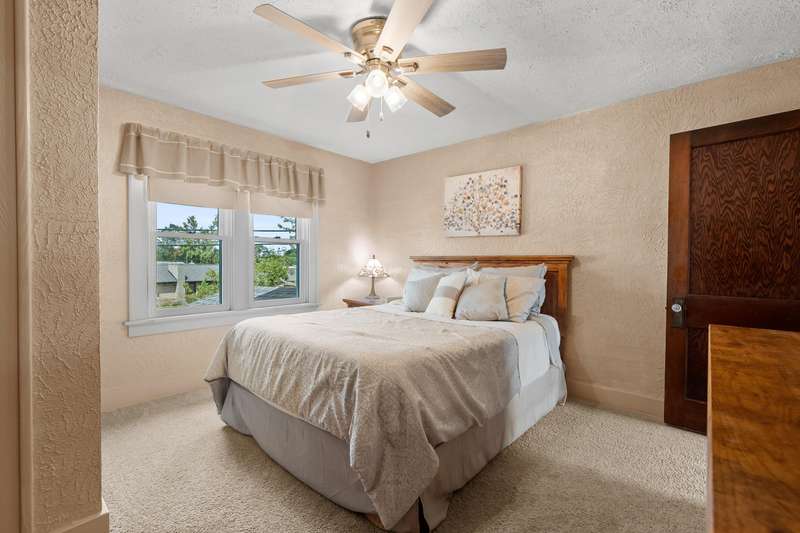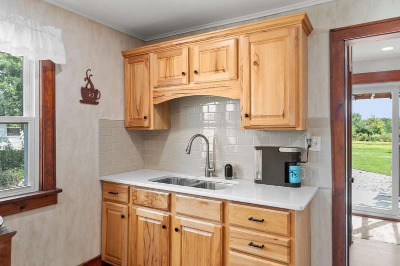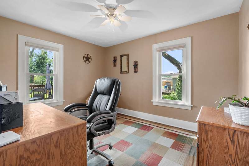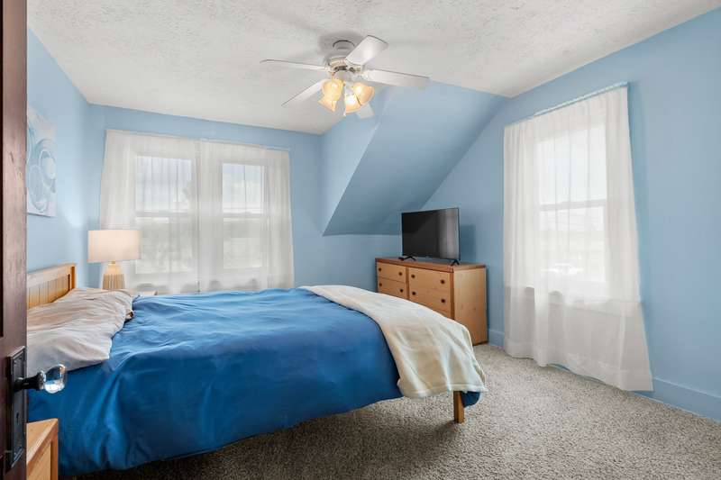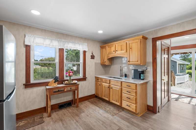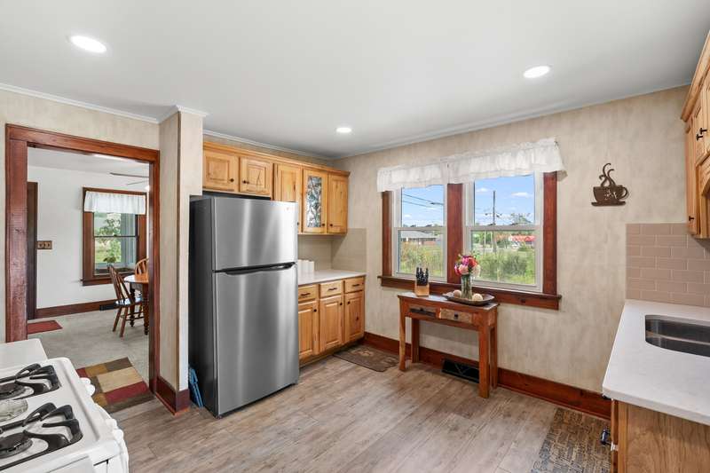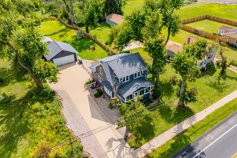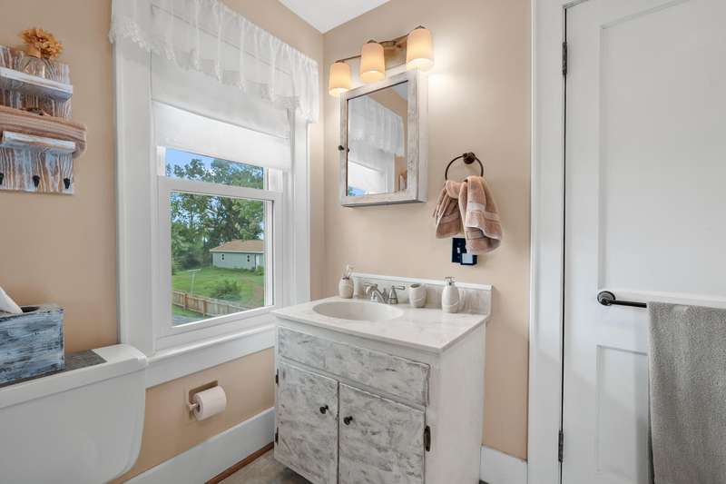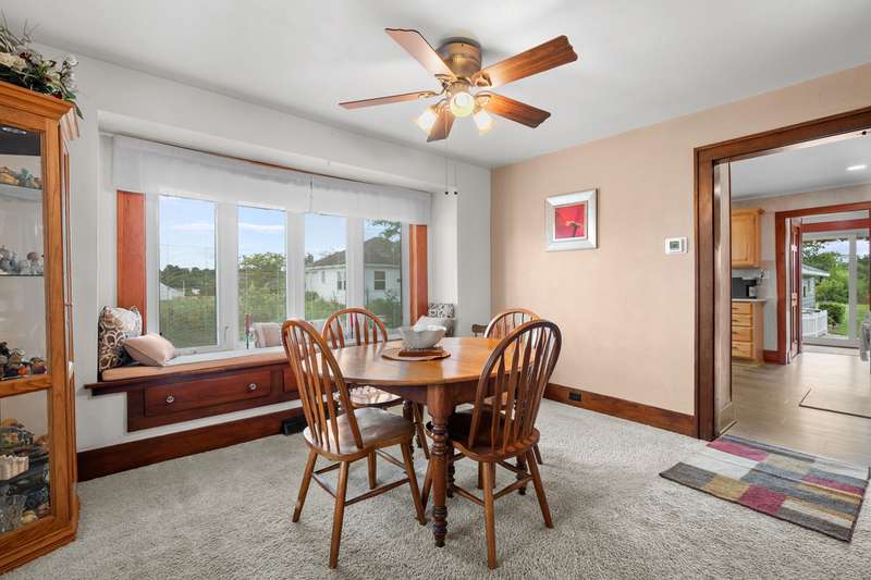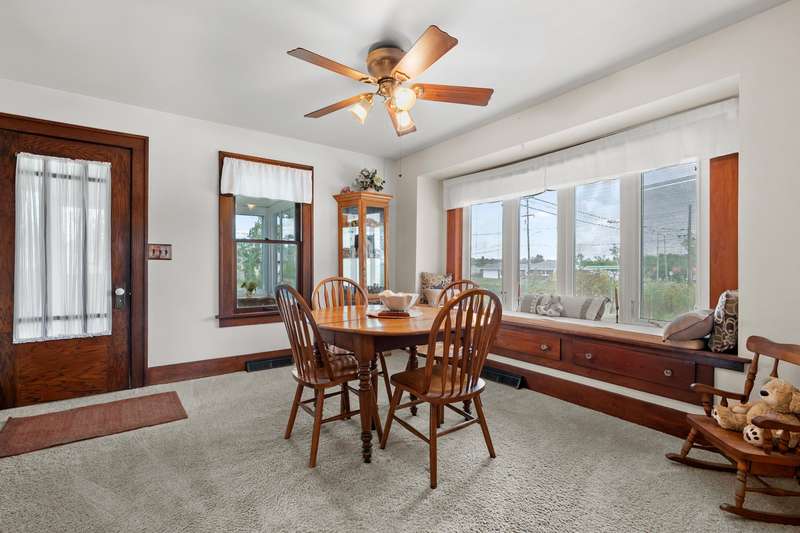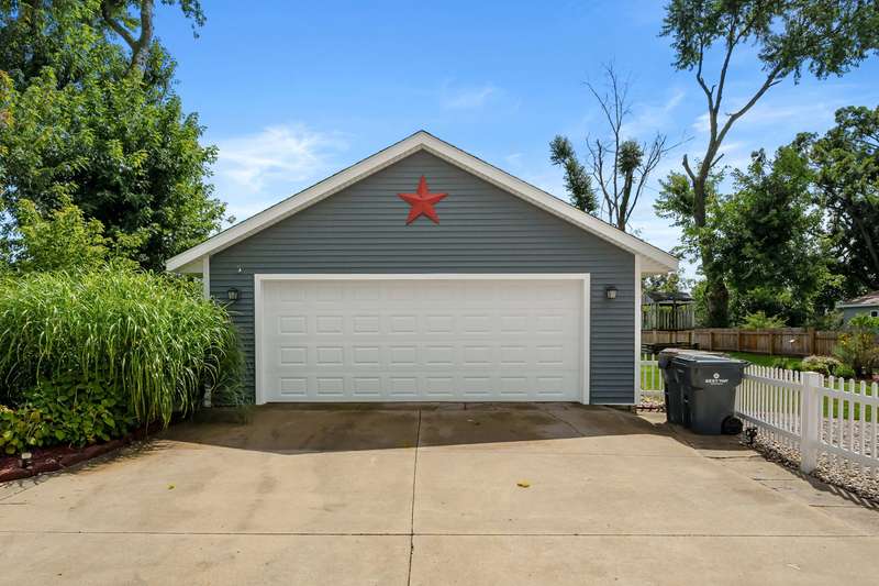 This charming Portage home is move-in ready with thoughtful updates throughout. The kitchen features hickory cabinets, granite countertops, vinyl plank flooring, a custom pantry, and all appliances. Enjoy the open dining room with a cozy bench seat, large windows, and an inviting living room with built-ins and original woodwork. The enclosed front porch adds 3-season living space. The main floor includes a versatile bedroom or office. Upstairs offers three bedrooms and a full bath. The freshly finished basement adds extra living area, a new drop ceiling, and a half bath-ideal for entertaining or a home gym. Recent updates: 2024-new roof, soffit, Tyvek wrap, siding, gutters, patio slider, 24 windows, central A/C, water heater, washer/dryer; 2023-kitchen & bath remodel, sump pump; 2017-deck & pergola. Outside features an oversized 2-car garage, new 12*16 shed, and a rare 1/2-acre fenced lot near schools, shopping, and conveniences.