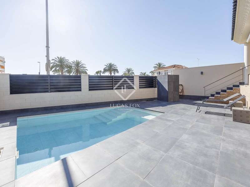 The property has an excellent location, just 100 meters from the sand and very close to the Canet Yacht Club. Nearby you'll find shops, supermarkets, restaurants, and more. Built in 2008 on a 368m2 corner plot and completely renovated in 2022. We are looking at a premium property, because the best qualities have been used and every detail has been taken care of, including a lift, to achieve a truly exclusive house with a modern and Mediterranean atmosphere. Two-story project, plus an attic and basement, and exterior space with terraces and a pool. Sea views. Upon entering the property we find spacious rooms and lots of light. Living room with open kitchen, fully equipped, with the terrace and views of the sea in the background, dining area and a bathroom with shower complete the layout of this floor The upper floor consists of two double bedrooms, both with built-in wardrobes and a terrace, a full bathroom with a shower, and a spacious master bedroom with a dressing room, a full bathroom , and a terrace. The attic offers a large space where another room could be located or used as a play area, office, gym, etc. The basement is generously sized, allowing it to accommodate, in addition to the garage, a laundry room room and storage area. Exterior, we find large terraces with sea views and a saline pool with automatic cleaning. As we mentioned before, it's perfect for any occasion: air conditioning and heating, hardwood floors, an elevator with access to all floors, electric shutters, an elevator, electric shutters and awnings, osmosis, an alarm, and more. Ready to move in and enjoy the sea breeze Please do not hesitate to contact us for more information or to arrange a personalized visit.
