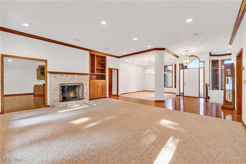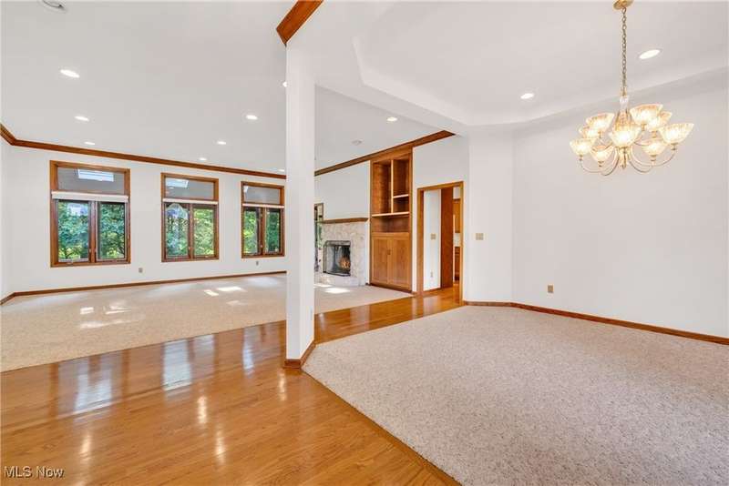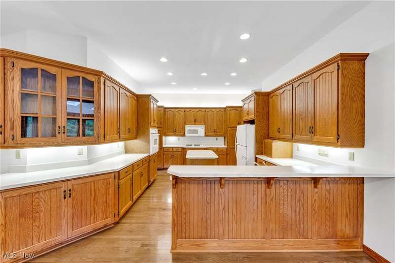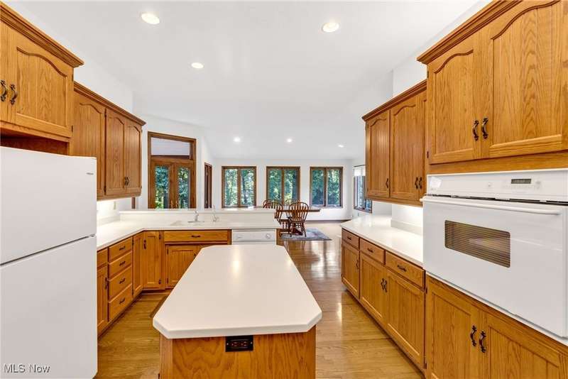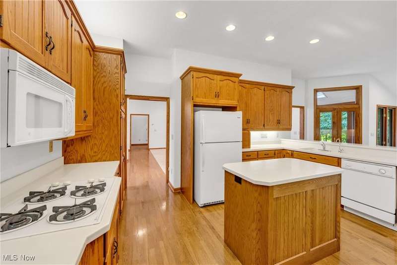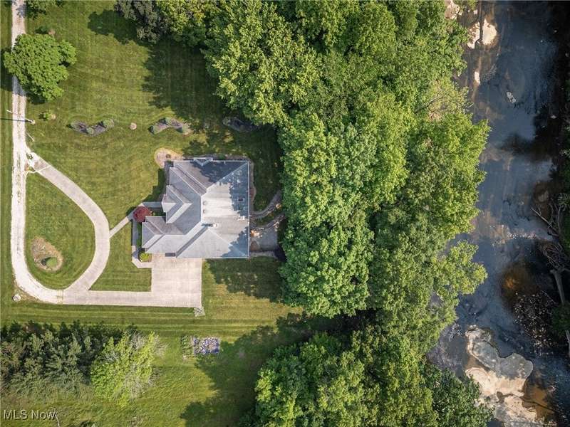 Serene privacy in this beautiful, brick ranch home in the heart of Olmsted Falls! Natural woodwork and doors throughout with a freshly painted interior and gleaming hardwood floors! The open floor plan includes a large great room with woodburning fireplace, built-in cabinet and shelving, and flows into thedining room with trayed ceiling! The spacious eat-in kitchen offers tons of cabinets and access to the covered patio! Unwind in the master suite which features an ensuite bath with soaking tub, shower, double vanites and a large walk-in closet!. Two large bedrooms share a jack and jill full bath. A half bath is conveniently located off the entry way. The unique 1.18 acre property backs up to the Rocky River with gorgeous year-round views. The full, unfinished, walk-out lower level offers unlimited potential for additional living space and added storage. Three car, side-load garage with ample storage. Forced air furnace and A/C was just added Sept 2025! Call today for a private tour of this one of a kind home!