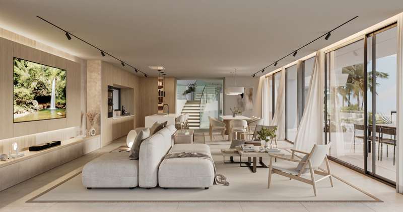 Discover the essence of luxury and exclusivity in this stunning avant-garde design villa, located in one of the most privileged areas of the Costa del Sol. With modern and elegant architectural lines, this property perfectly blends sophistication with the tranquility of its surroundings, offering uninterrupted panoramic views of the Mediterranean Sea. From the moment you pass through the majestic entrance of the villa, you can perceive the balance between contemporary design and the warmth of noble materials. The large floor-to-ceiling windows flood every room with natural light, framing the marine horizon and creating a seamless connection between the interior and exterior. The heart of the home is its spectacular open-concept living room, a spacious area where design and functionality converge in harmony. The state-of-the-art kitchen, equipped with high-end appliances and luxury finishes, integrates perfectly with the dining area, ideal for enjoying unforgettable moments with family and friends. The villa features several exclusive suites, each with its own private bathroom and access to private terraces with unbeatable views. The master suite, a true sanctuary of rest, includes a walk-in closet and a spa-like designer bathroom, offering an atmosphere of absolute relaxation. The exterior of the property is an extension of the interior luxury. A spectacular infinity pool merges with the horizon, inviting you to enjoy the serenity of the surroundings. The spacious terraces and chill-out areas have been designed to make the most of the Mediterranean climate, making them the perfect setting for outdoor evenings or moments of relaxation under the sun. Additionally, the villa boasts a private gym, wellness area, garage for several vehicles, and state-of-the-art home automation technology for unparalleled comfort. Its location in Alcaidesa ensures privacy and exclusivity, with access to renowned golf courses, crystal-clear beaches, and premium services just minutes away. If you are looking for a property that combines luxury, design, and a privileged location, this villa is the perfect choice. Contact us for more information and discover your next home on the Costa del Sol. Construction date starting August 2025 and will be ready by the end of 2026.