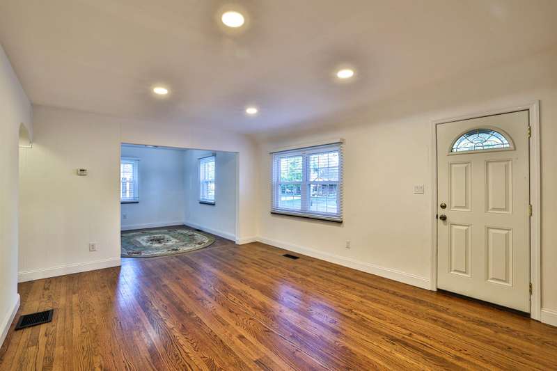 Updated cape cod, beautiful hard wood floors throughout 1st floor, formal dining room, updated kitchen, large pantry, newer appliances, walkout to covered back deck overlooking large, fenced yard. 1st floor laundry room with newer washer and dryer. 1st floor bedroom updated full bath. Recently finished lower level with updated full bath. Basement has been waterproofed with a transferrable warranty through Everdry. New roof in 2022, CINCH transferrable home warranty paid through August 2026. New insulation throughout house and attic. Easy access to 71/75. Walking distance to stores and restaurants. Nothing to do but move in.